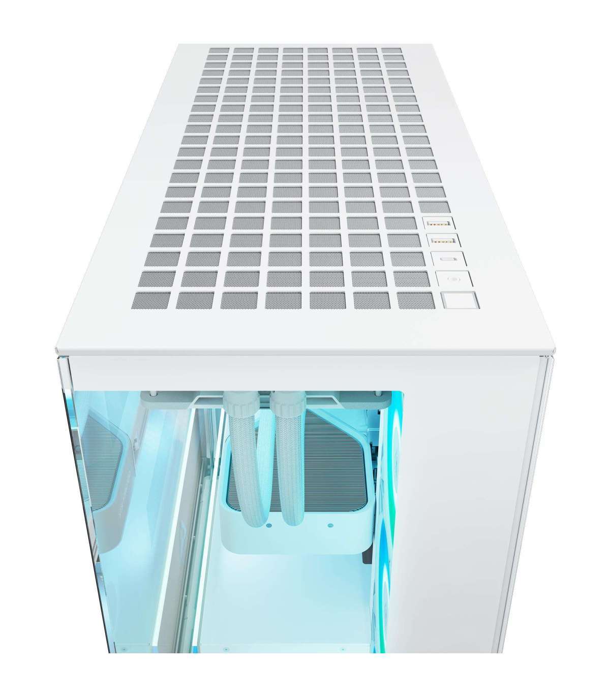 Integrated glass panel with 24 A-RGB LEDs illuminates the lower section of the case.