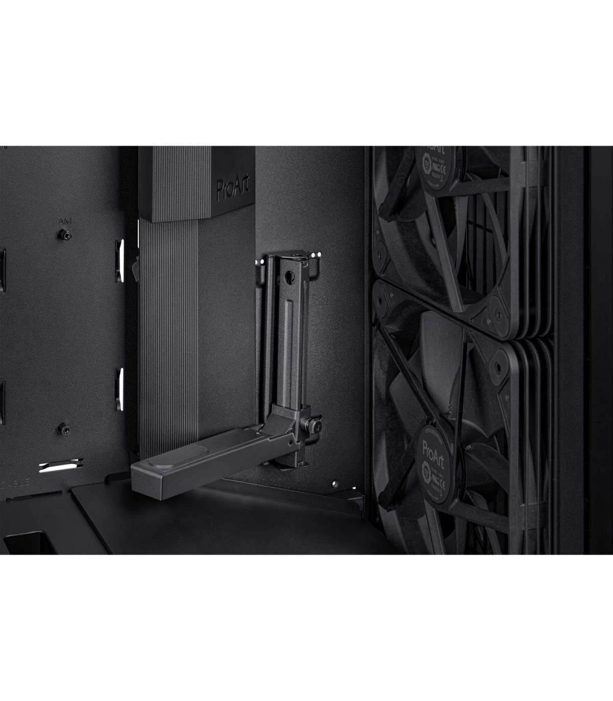 The ProArt PA602 supports one 420 mm radiator for AIO cooling or custom liquid-cooling loops. It also provides sufficient space for the beefiest graphics cards in both horizontal and vertical mounting positions.