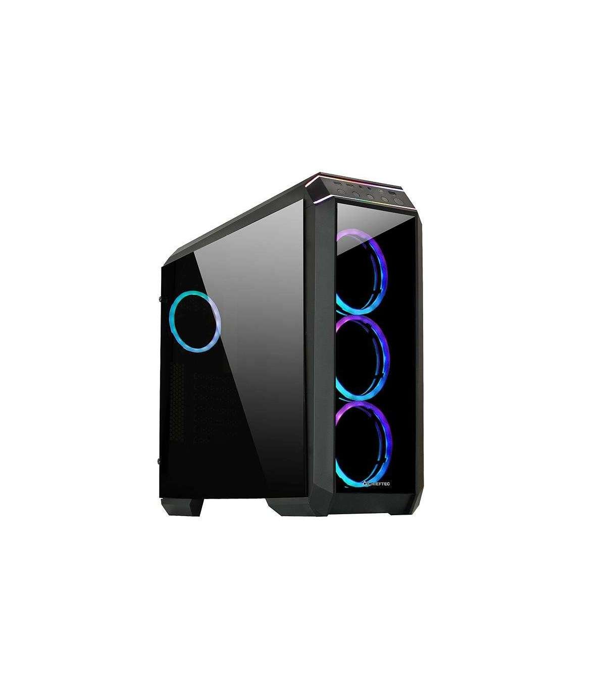 The CHIEFTEC STALLION II premium GAMING CHASSIS comes with tempered glass on the left side and front panel, thereby enhancing a clear overview of the interior of the chassis and positively exposing RGB RING fans andother lightening components. 4 pre-installed 120mm RGB RAINBOW RING fans are controlled by a remote control unit which forms part of the extensive „scope of delivery“. The sophisticated interior design allows the integration of an additional 360mm water-cooling radiator to the front and so, this second generation Chieftec gaming chassis fulfills and surpasses every gamer’s expectations.