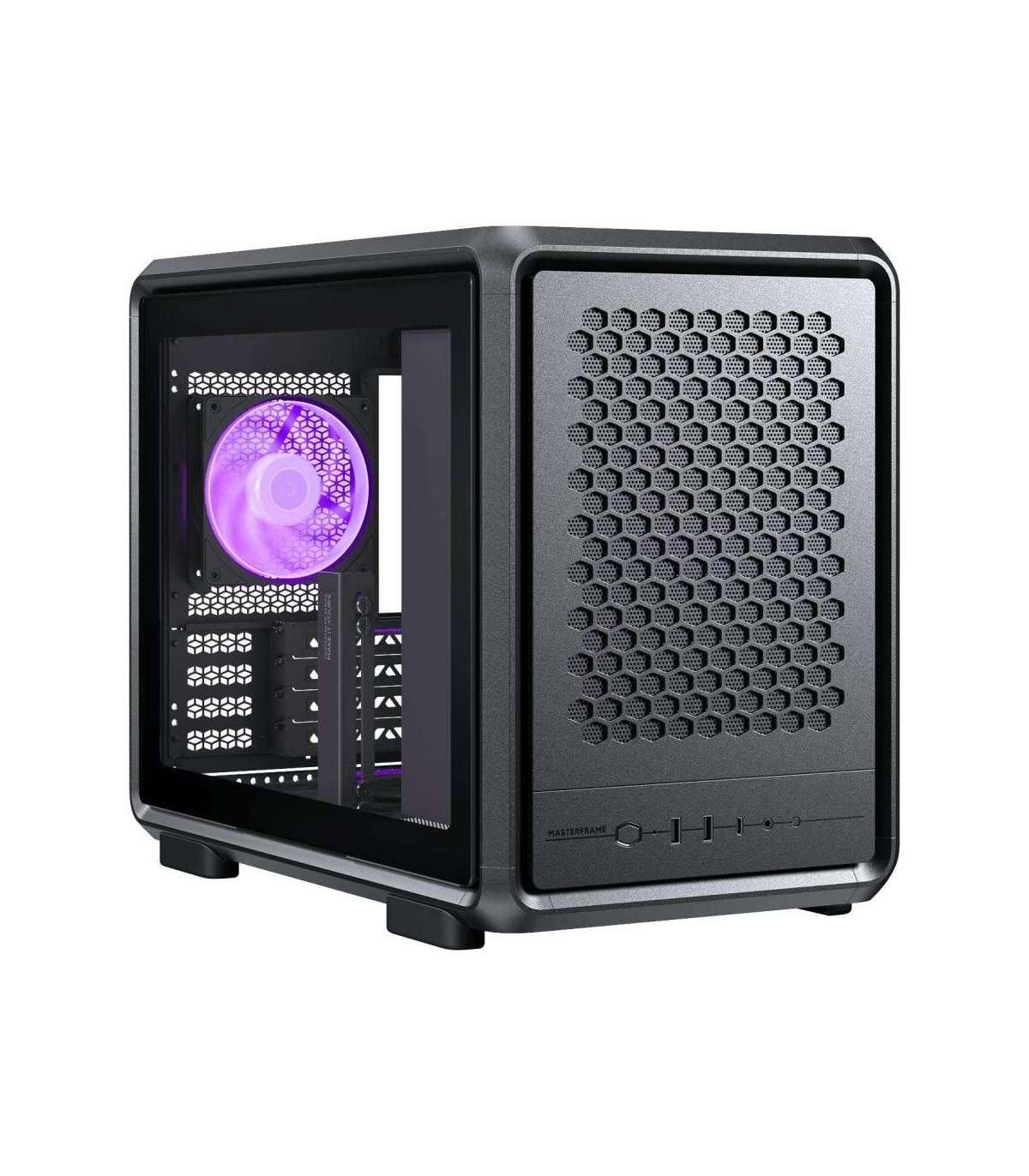 Despite its compact size, the MasterFrame 400 Mesh comes alive with a pre-installed 120 mm SickleFlow ARGB fan—quiet, powerful, and fully customizable.
