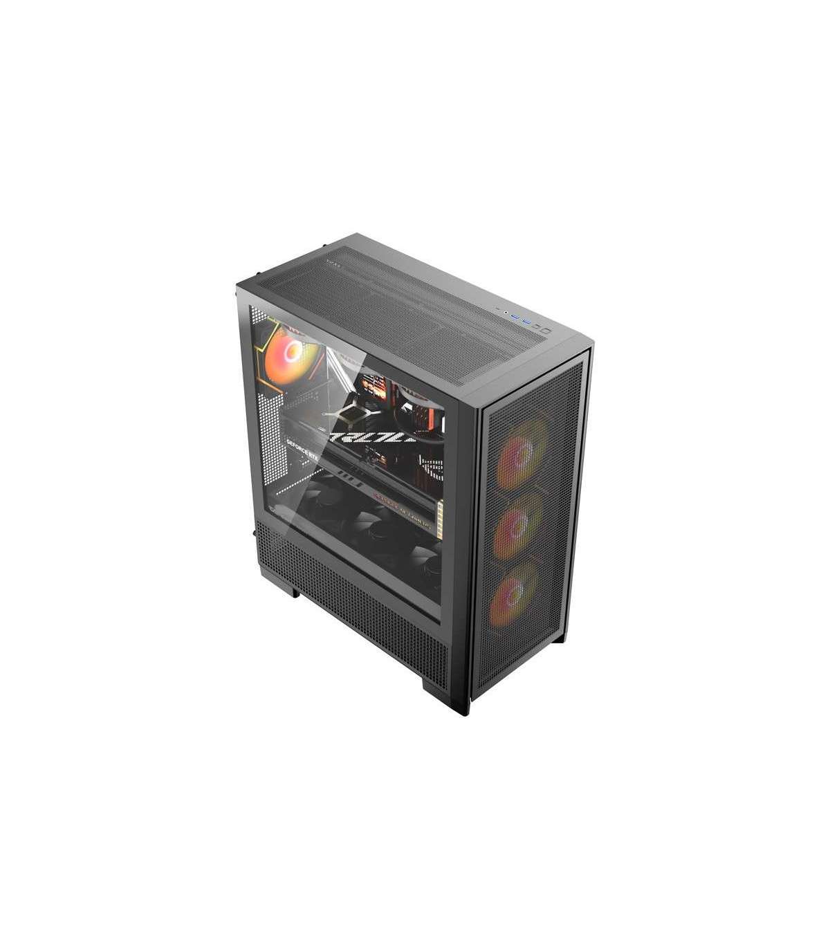 DarkFlash AIRNOVA is a spacious Big Tower case that supports E-ATX, ATX, M-ATX, and ITX motherboards, offering space for graphics cards up to 395 mm in length and CPU coolers up to 175 mm in height. It is equipped with ventilation panels with a large 5x5 mm mesh, 3 120 mm fans, and support for water cooling up to 420 mm. The top panel has all the necessary connectors: two USB 3.0 ports, HD Audio input, Power and Reset buttons, and a fast USB Type-C Gen2 (10 Gbps) connector, which significantly improves data transfer.
