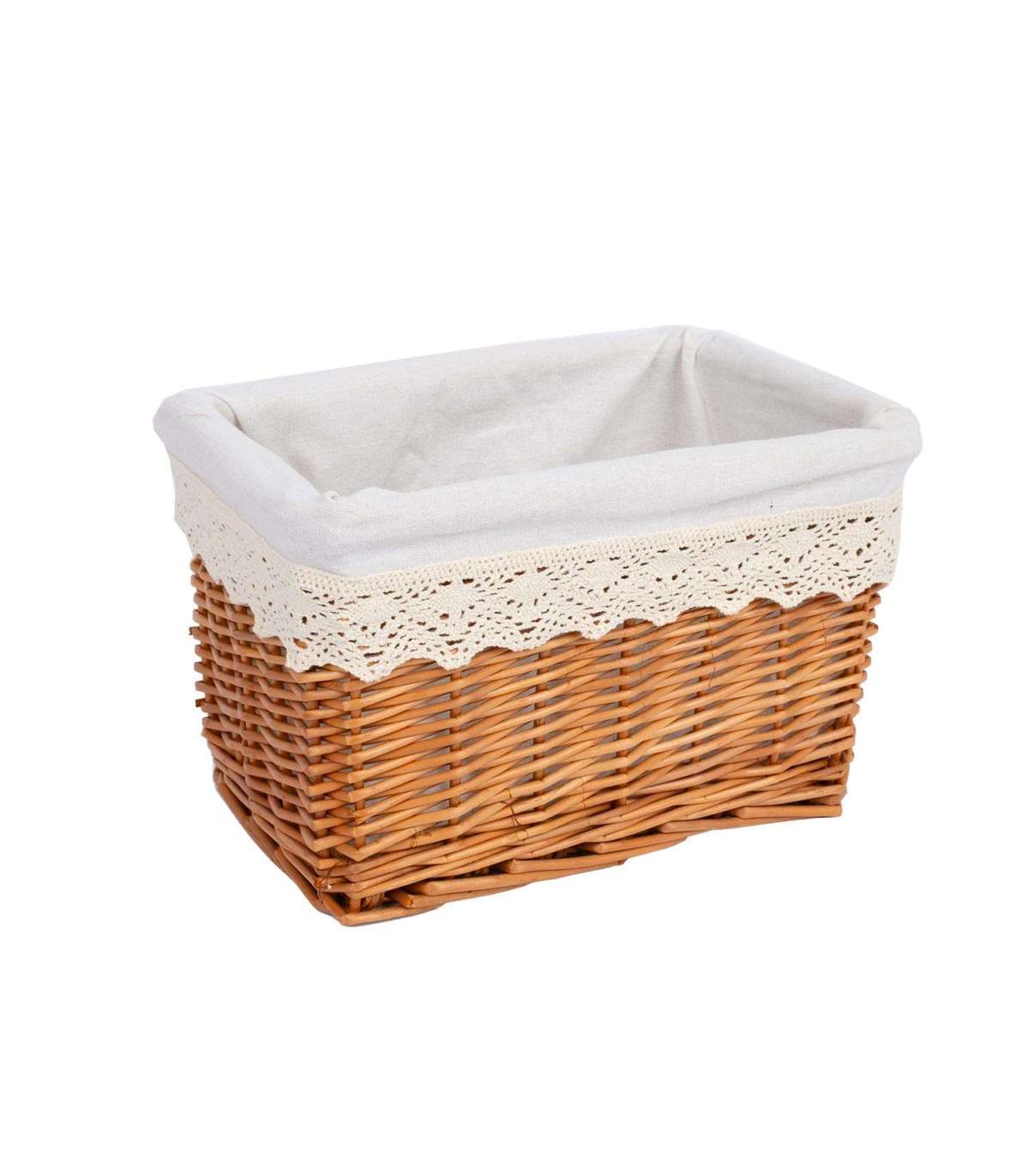 Материал корзины: верба, обработано лаком. Tекстильная подкладка: с хлопковым кружевом.