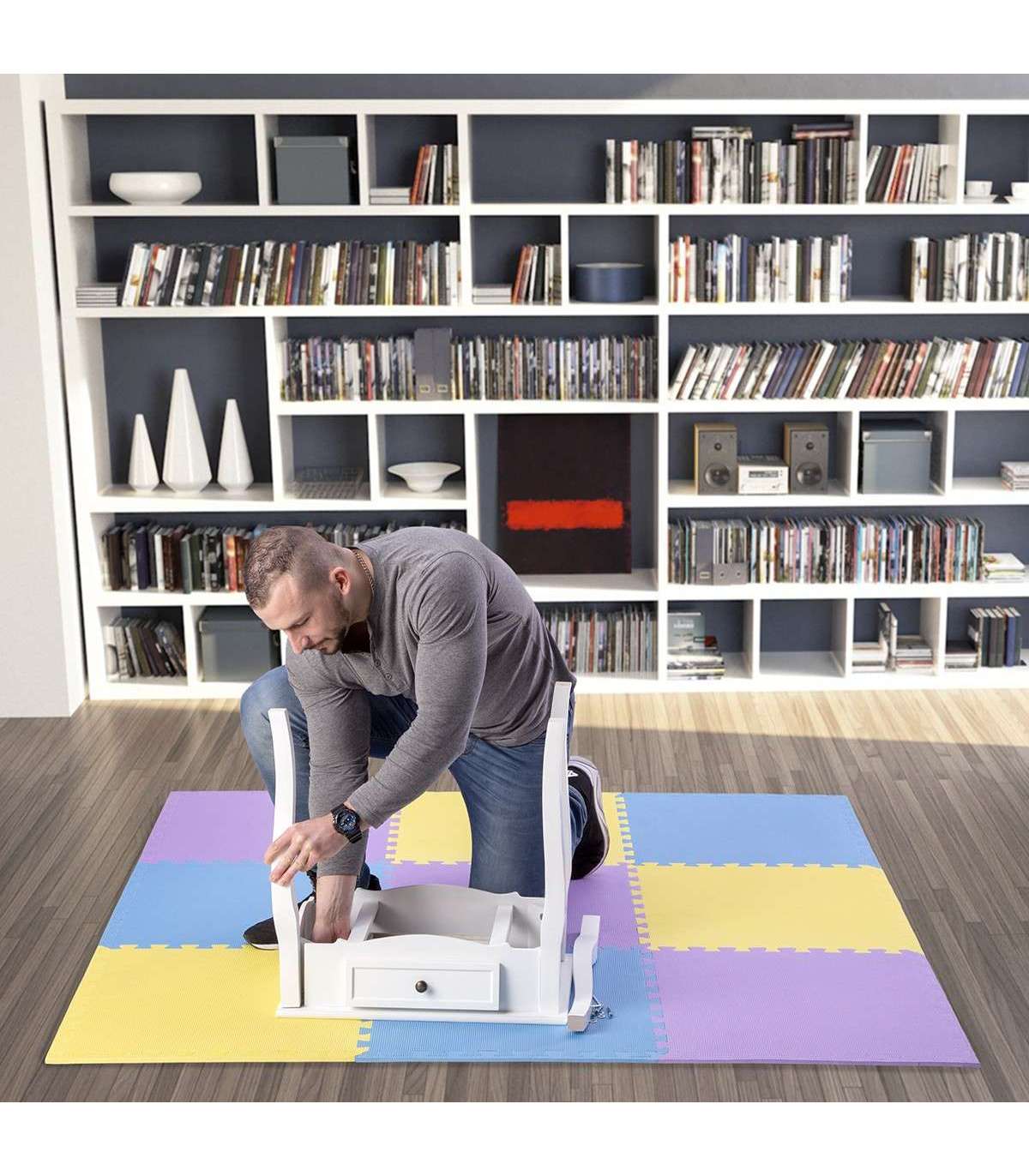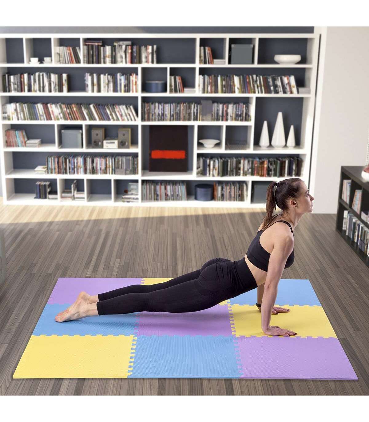 PUZZLE PROTECTIVE MAT effectively protects the floor from damages and additionally it suppresses noises made during training with weights.It also reduces vibration caused during exercising. Puzzle protective mat can be used under many kinds of sports equipment such as for example: exercise bench, exercise bike, elliptical bike, treadmill, rowing machine or even home gym. Thanks to the „puzzle type” assembly system, mat can be configured with any number of sets needed. Deep cuts guarantee stability of the combined elements.Advantages:Protects the floor from damagesReduces noise and vibrationEasy to connect and disconnectEasy to cleanNon-slip, perforated surfaceSpecification:Material: EVAThickness: 10 mmDimensions of a single element:length: 600 mmwidth: 600 mmDimensions of the 9 elements combined:length: 1800 mmwidth: 1800 mmHardness: 20Remarks:24 months warrantyImporter: Abisal Ltd. | Poland | 41-807 Zabrze | Pyskowicka Street 17 | e-mail: abisal@abisal.plAbisal Ltd.. declares that the products sold by the company are safe and meet the requirements contained in the Act on General Product Safety of December 12, 2003. (Journal of Laws of December 31, 2003)
