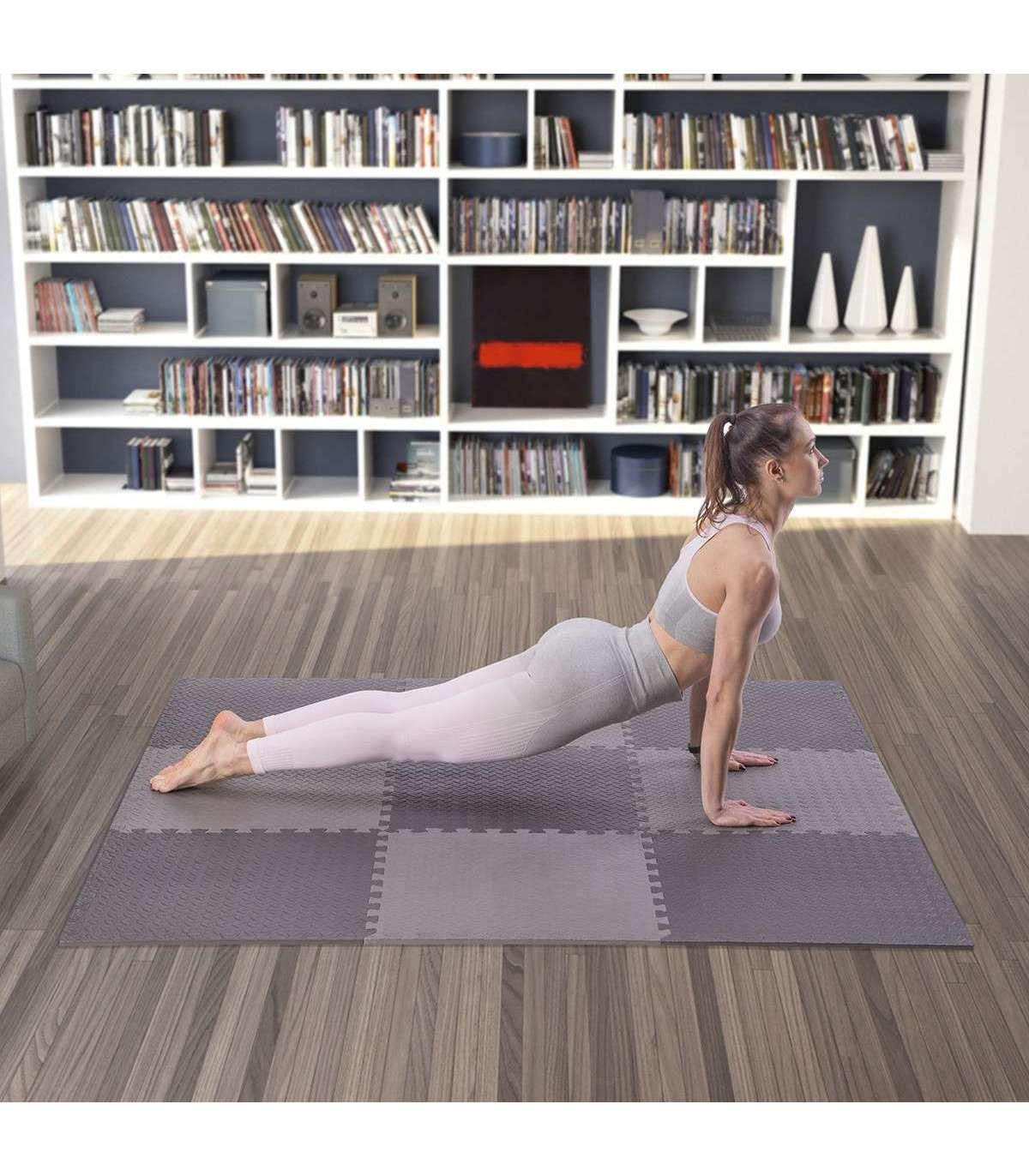 PUZZLE PROTECTIVE MAT effectively protects the floor from damages and additionally it suppresses noises made during training with weights.It also reduces vibration caused during exercising. Puzzle protective mat can be used under many kinds of sports equipment such as for example: exercise bench, exercise bike, elliptical bike, treadmill, rowing machine or even home gym. Thanks to the „puzzle type” assembly system, mat can be configured with any number of sets needed. Deep cuts guarantee stability of the combined elements.Advantages:Protects the floor from damagesReduces noise and vibrationEasy to connect and disconnectEasy to cleanNon-slip, perforated surfaceSpecification:Material: EVAThickness: 12 mmDimensions of a single element:length: 600 mmwidth: 600 mmDimensions of the 9 elements combined:length: 1800 mmwidth: 1800 mmHardness: 30Remarks:2-year warranty for home use1-year warranty for commercial useImporter: Abisal Ltd. | Poland | 41-807 Zabrze | Pyskowicka Street 17 | e-mail: abisal@abisal.plAbisal Ltd.. declares that the products sold by the company are safe and meet the requirements contained in the Act on General Product Safety of December 12, 2003. (Journal of Laws of December 31, 2003)