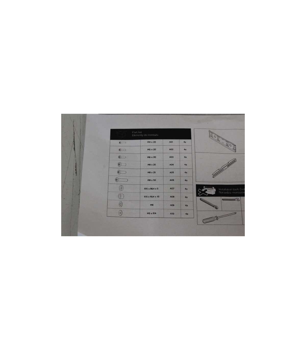 - DAMAGED PACKAGING, USED, MISSING SCREWS