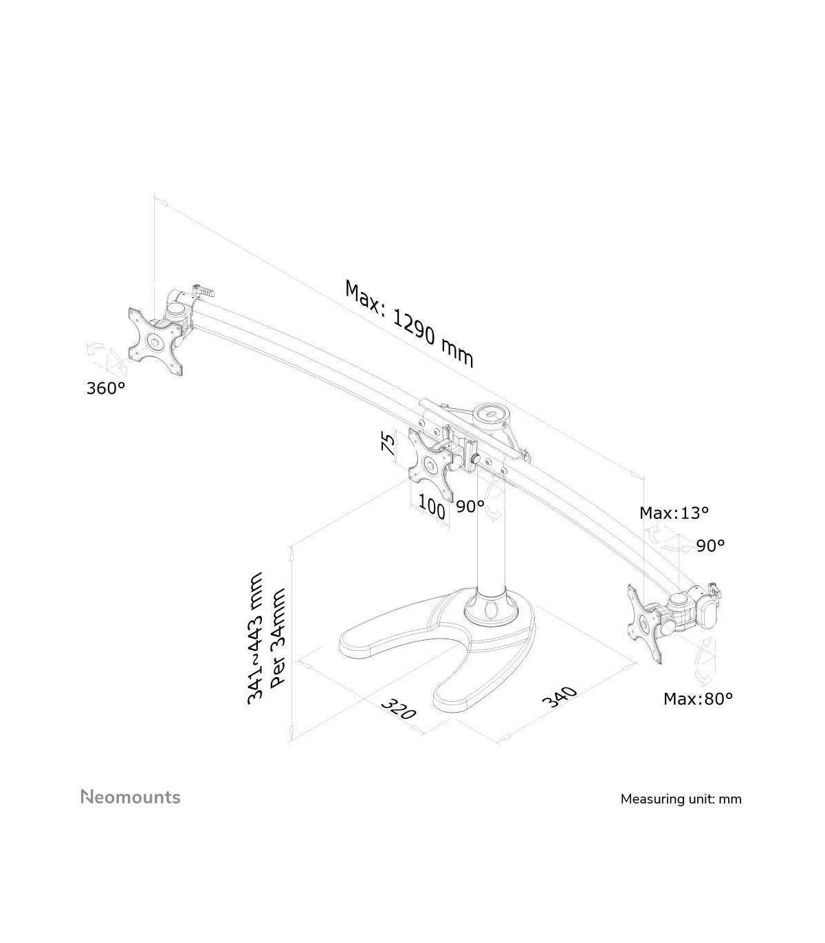 NewStar FPMA-D700DD3 has one pivot point and is suitable for screens up to 27" (68 cm). The weight capacity of this product is 8 kg each screen. The desk mount is suitable for screens that meet VESA hole pattern 75x75 or 100x100mm. Different hole patterns can be covered using NewStar VESA adapter plates.