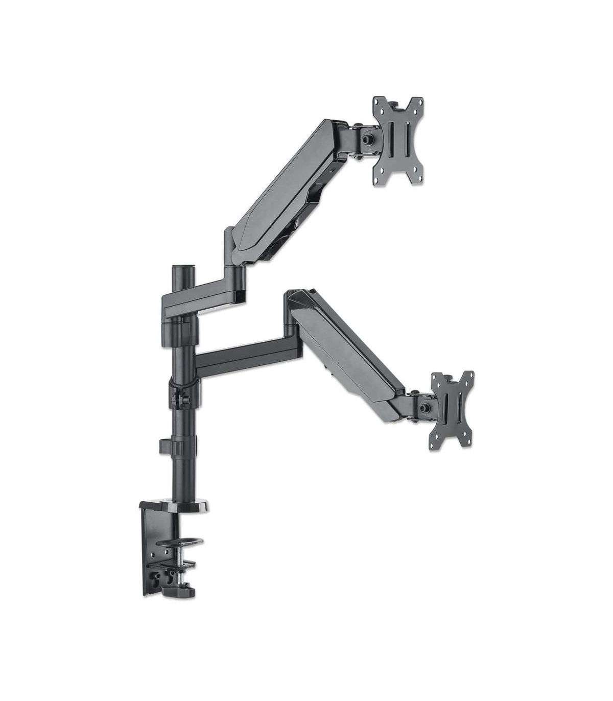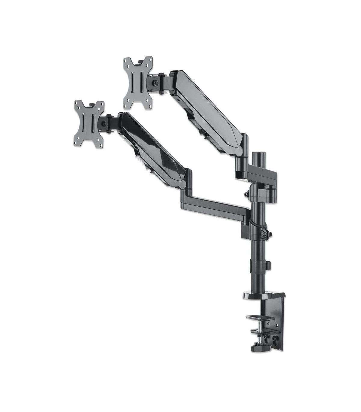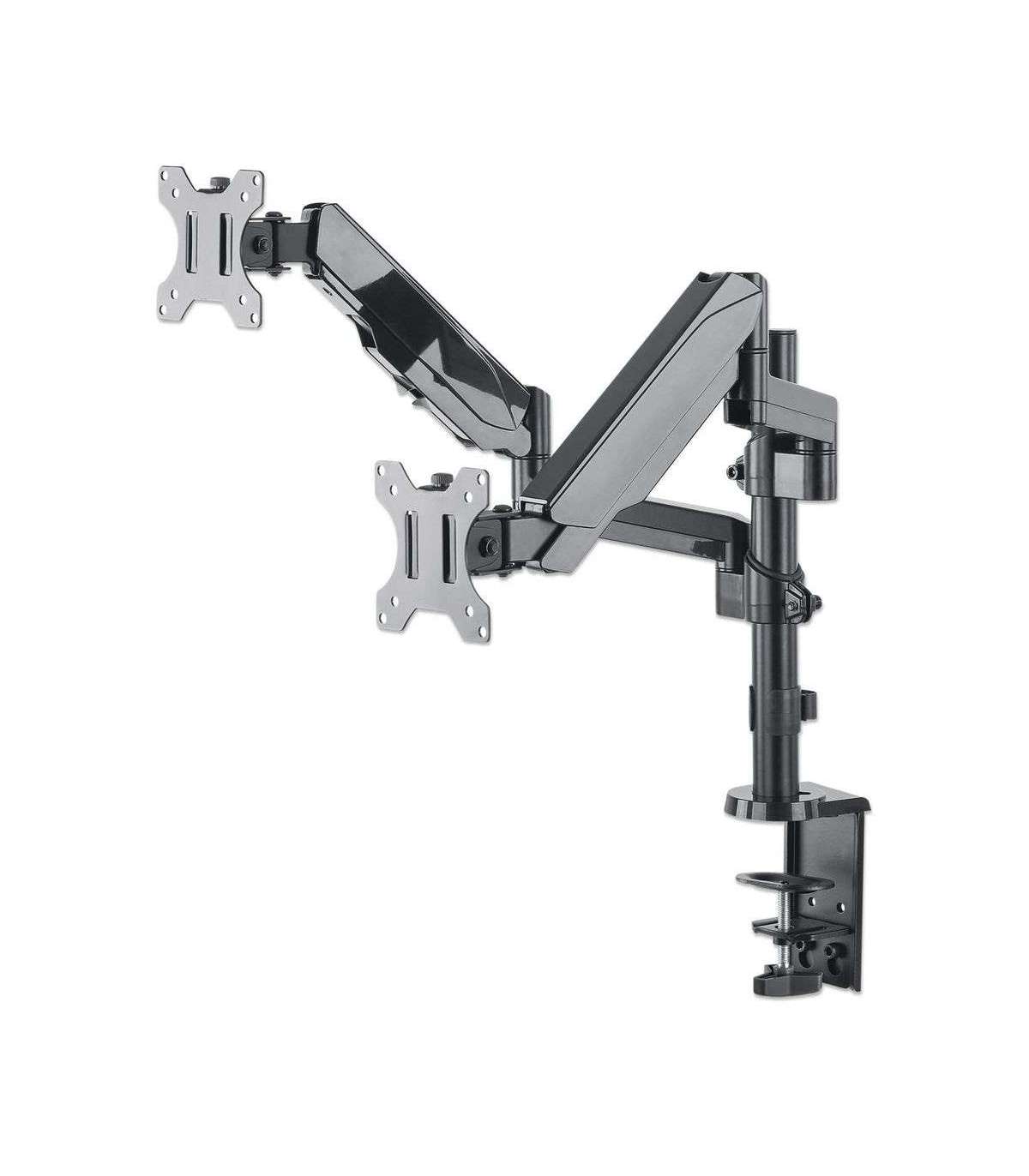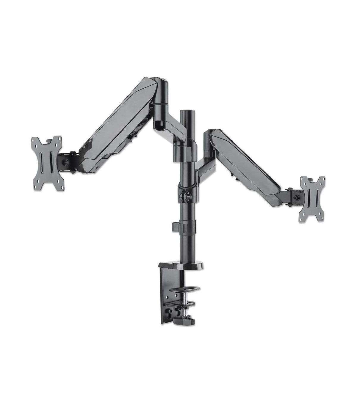 Manhattan TV & Monitor Mount, Desk, Full Motion (Gas Spring), 2 screens, Screen Sizes: 10-27", Black, Clamp or Grommet