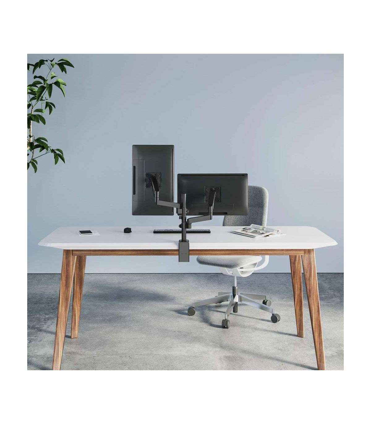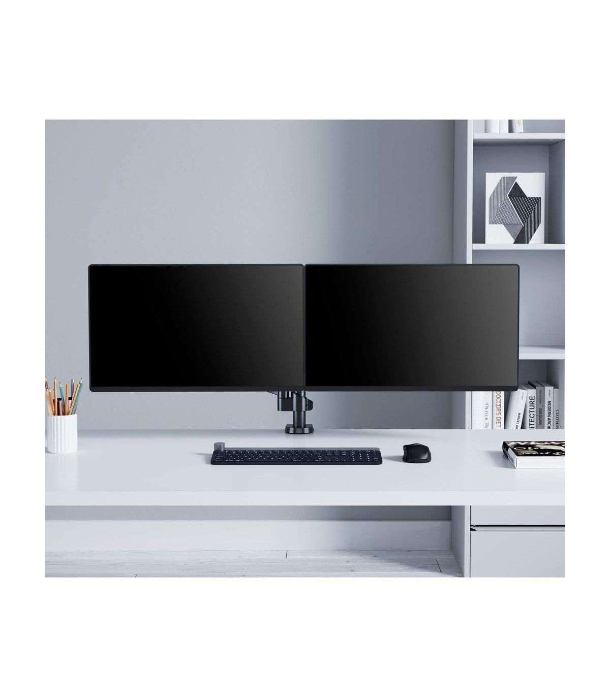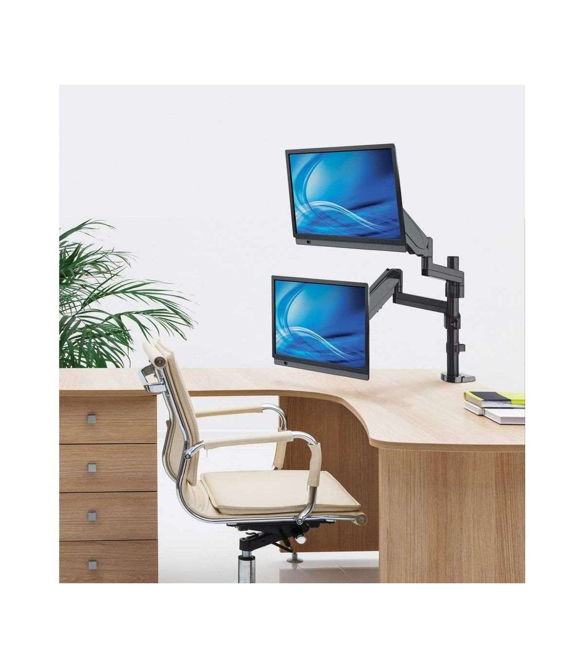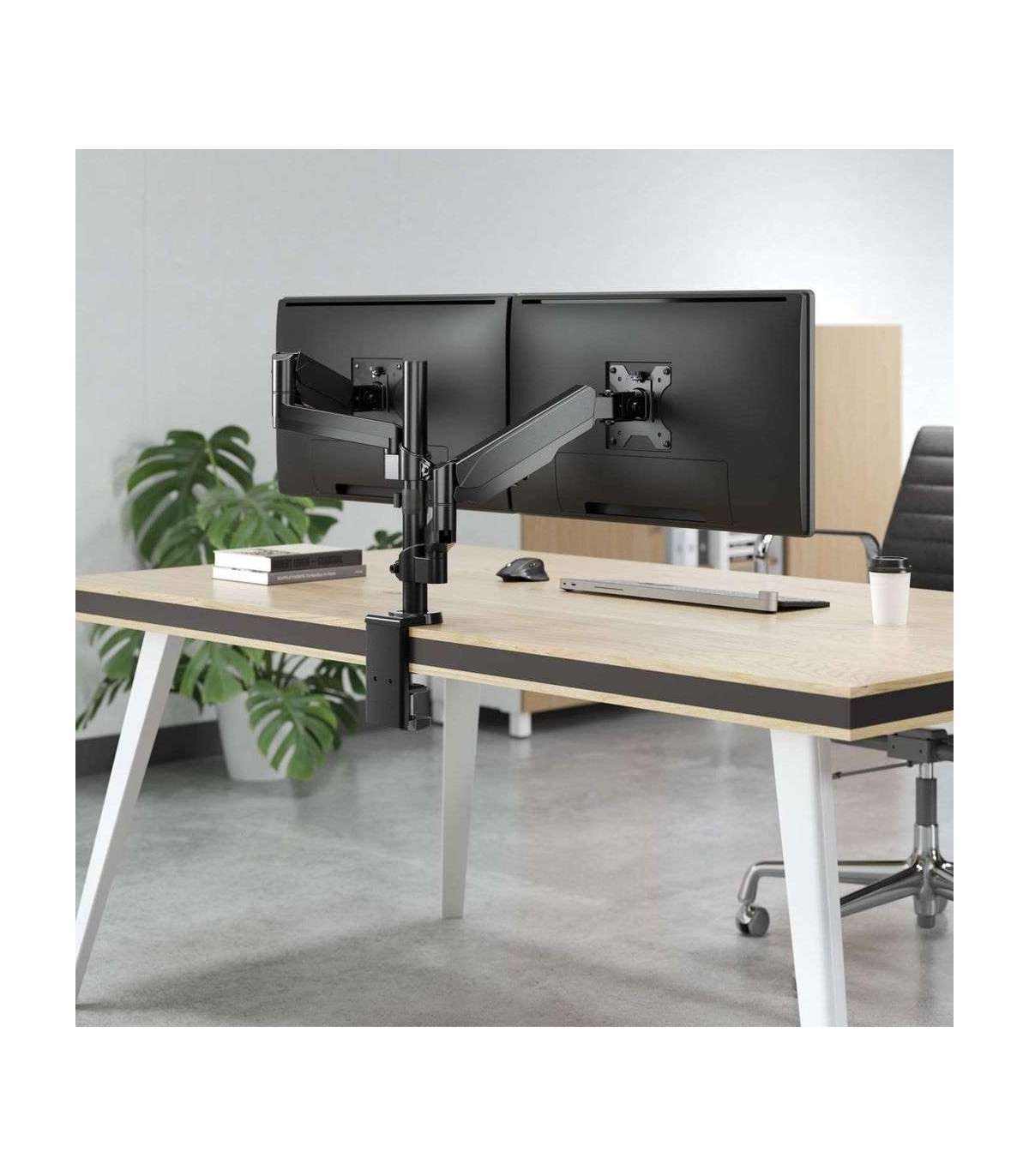 Manhattan TV & Monitor Mount, Desk, Full Motion (Gas Spring), 2 screens, Screen Sizes: 10-27", Black, Clamp or Grommet