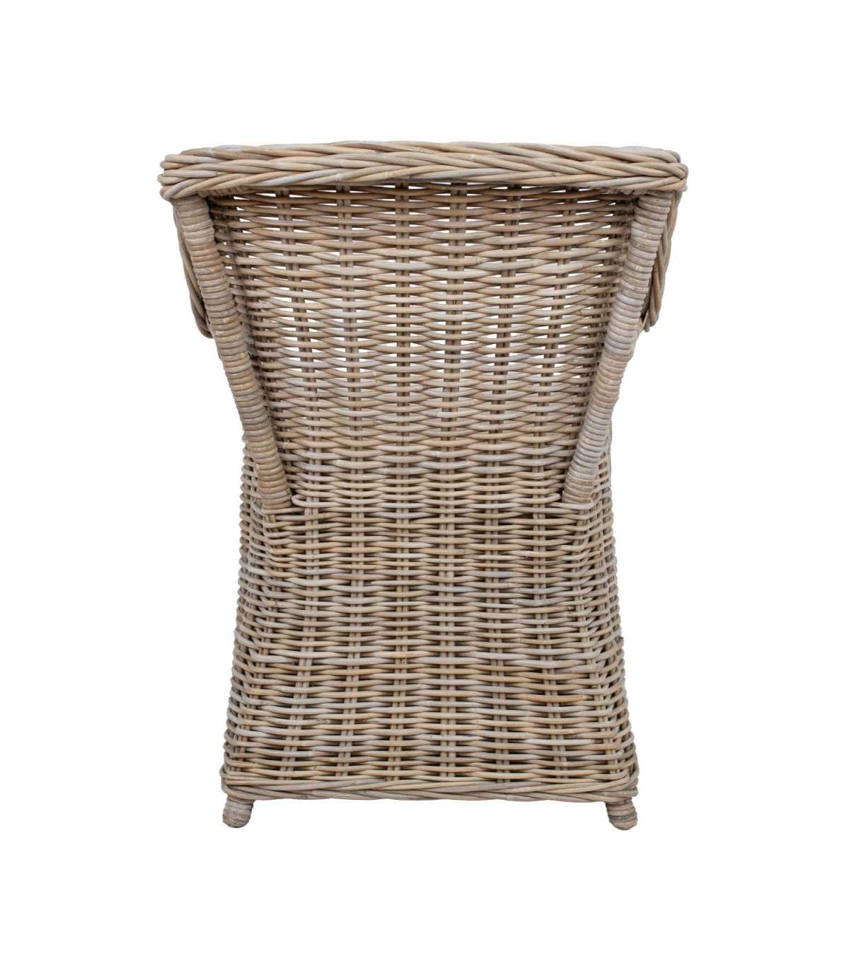 Tugitool KATALINA. Käsitööna valminud rotang tugitool on stiilne ja kaunis sisustuselement hubase ja looduslähedase atmosfääri loomiseks. Tooli raam on valmistatud painutatud rotangist ja kaetud üleni kubu rotangist punutisega. Istmepadi kuulub komplekti. Tooli üldmõõdud on 62x62xH83cm. Tooli istmepadja mõõdud on 46x48xH5cm, istme kõrgus (koos padjaga) 50cm. Käetoe kõrgus maast on 67cm. Kaalupiirang 100kg. Rotangpunutise hall värvitoon on looduslik ja selle saavutamiseks ei ole kasutatud kunstlikke värvaineid. Rotangmööbel on aastaringselt kasutatav siseruumides ning sobib hästi katusega terrassile või klaasitud rõdule. Mööblit võib kasutada välitingimustes, kuid tuleb meeles pidada, et rotangmööbel ei ole ilmastikukindel.