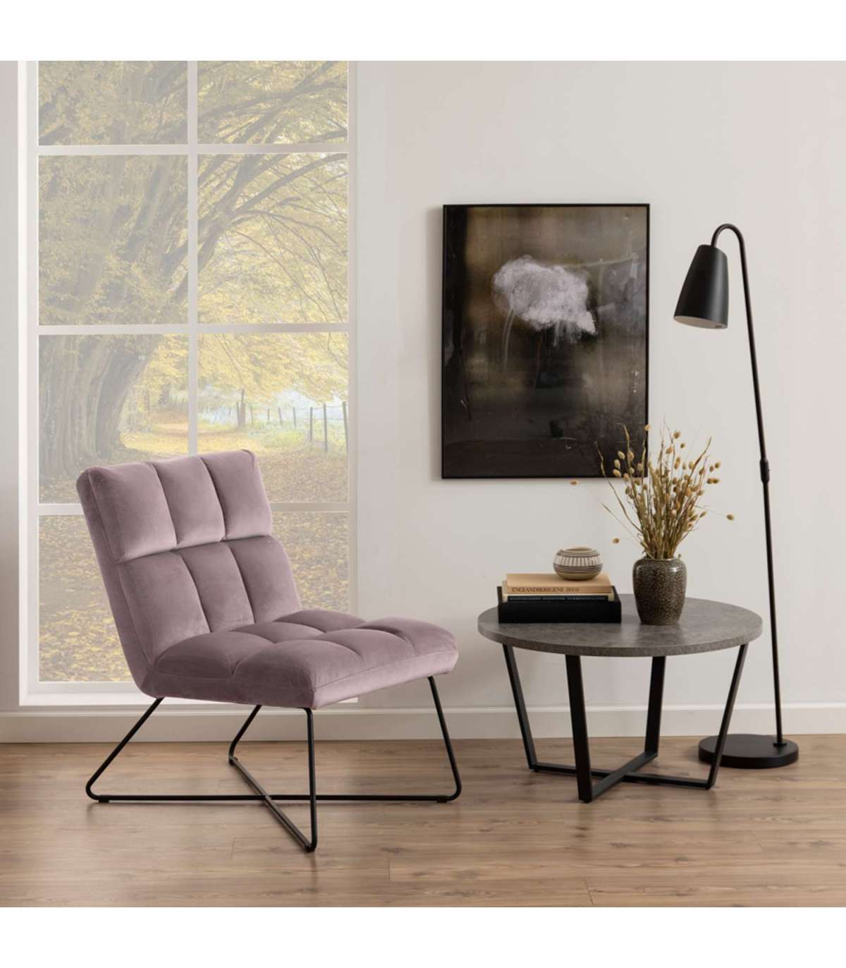 Кресло для отдыха ALBA винтаж розовый. Кресло обтянуто бархатной тканью с квадратной строчкой и застежкой-молнией, цвет: ткань VIC пыльная роза 18. Основа изготовлена из матового черного шероховатого металла с порошковым покрытием. Размеры изделия 62x86xH90см.