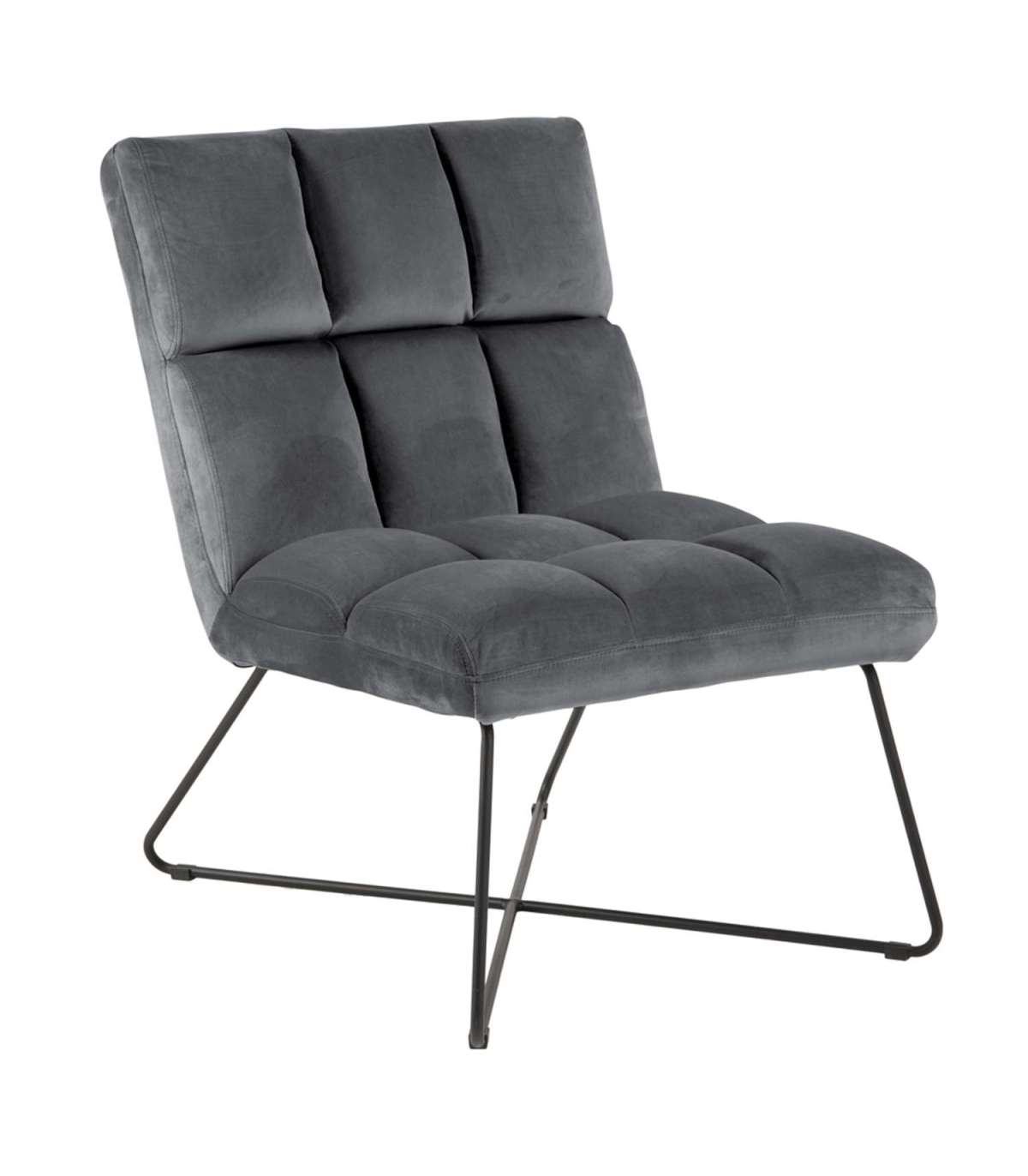 Кресло для отдыха ALBA темно-серый. Кресло обтянуто бархатной тканью с квадратной строчкой и застежкой-молнией, цвет: ткань VIC темно-серый 28. Основа изготовлена из матового черного шероховатого металла с порошковым покрытием. Размеры изделия 62x86xH90см.