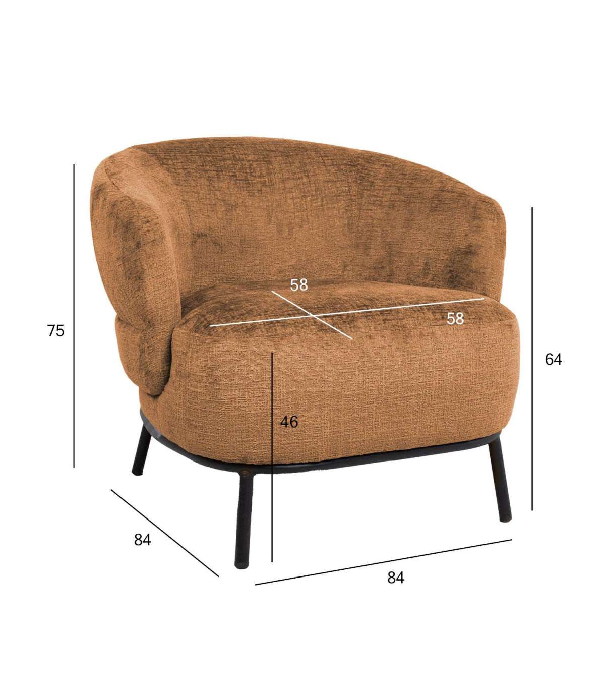 Tugitool GEMALA oran˛. Tugitooli pehme polsterdusega iste on kaetud sametise polüesterkangaga, Martindale väärtus 41 000. Tooli karkass on valmistatud puidust ja vineerist. Tooli sees on pocket vedruplokk. Polsterduseks on kasutatud polüuretaanvahtu ja polüesterkiudu. Tooli üldmõõdud on 84x84xH75cm. Istme laius 58cm, istmesügavus 58cm, istme kõrgus 46cm. Käetoe kõrgus maast 64cm. Tugitoolil on mustad metallist jalad H17cm.