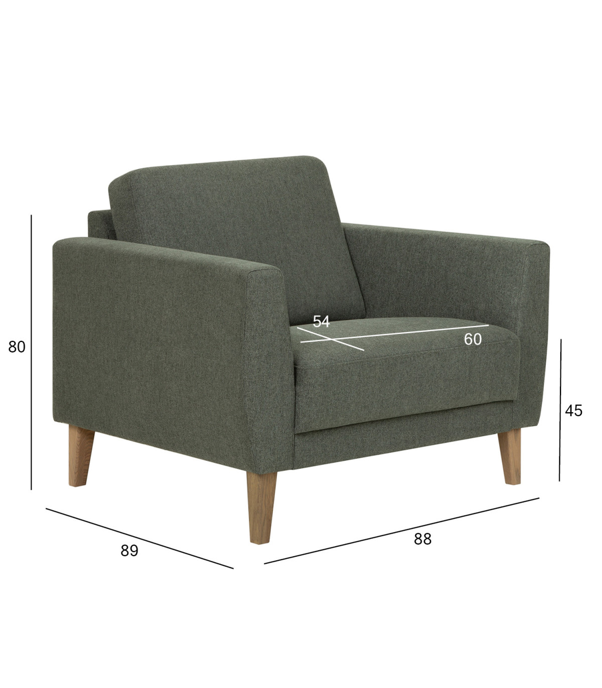 Кресло LANDO зеленый. Неподвижная подушка сиденья покрыта тканью из полиэстера плотностью 130 г/м2. Крышка не съемная. Подушка сиденья изготовлена из пены 20 мм 35 кг/м3 и 80 мм 35 кг/м3. Подушка спинки двусторонняя, чехол съемный. Подушка спинки покрыта тканью из полиэстера плотностью 300 г/м2. Подушка спинки изготовлена из пеноматериала толщиной 125 мм плотностью 15 кг/м3. Каркас изготавливается из массива дерева, фанеры, ДВП и ДСП. Каркас покрыт пенопластом 6мм 20кг/м3. Верхняя часть подлокотников покрыта пеной толщиной 30 мм плотностью 35 кг/м3 и тканью из полиэстера плотностью 130 г/м2. Квадратные ножки из дерева. Цвет ножек дымчатый дуб. Размеры ножек 5,5x3,5xH16см. Размеры изделия 88x89xH80см.