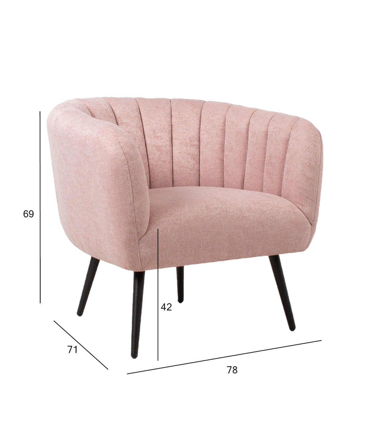 Кресло TUCKER 78x71xH69см, розовая ткань, черные металлические ножки
