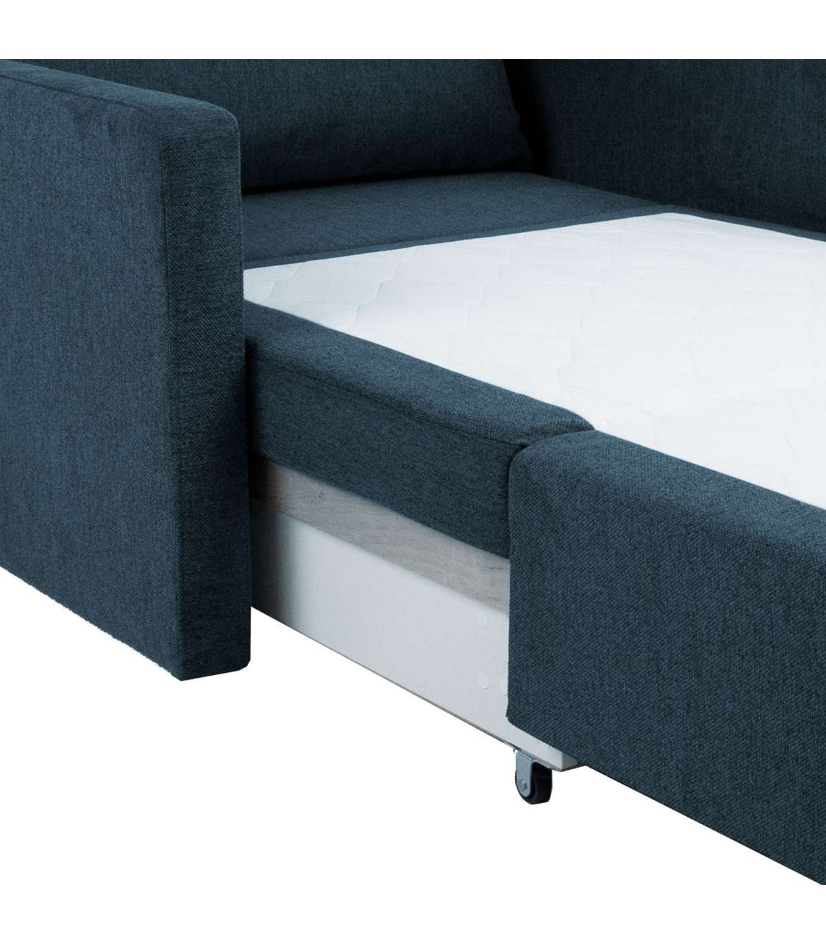 Кресло / кровать COLOGNE, 103x92x89см, 1 подушка. Размер спальной зоны: 85х195см, высота сиденья 45см. Материал покрытия: ткань темно-синего цвета CHICAGO-87, 94% полиэстер / 6% нейлон, водоотталкивающий, мартиндейл: 100 000. Каркас и подвеска: каркас деревянный. Обивка: пенополиуретан.