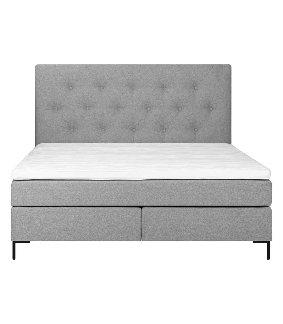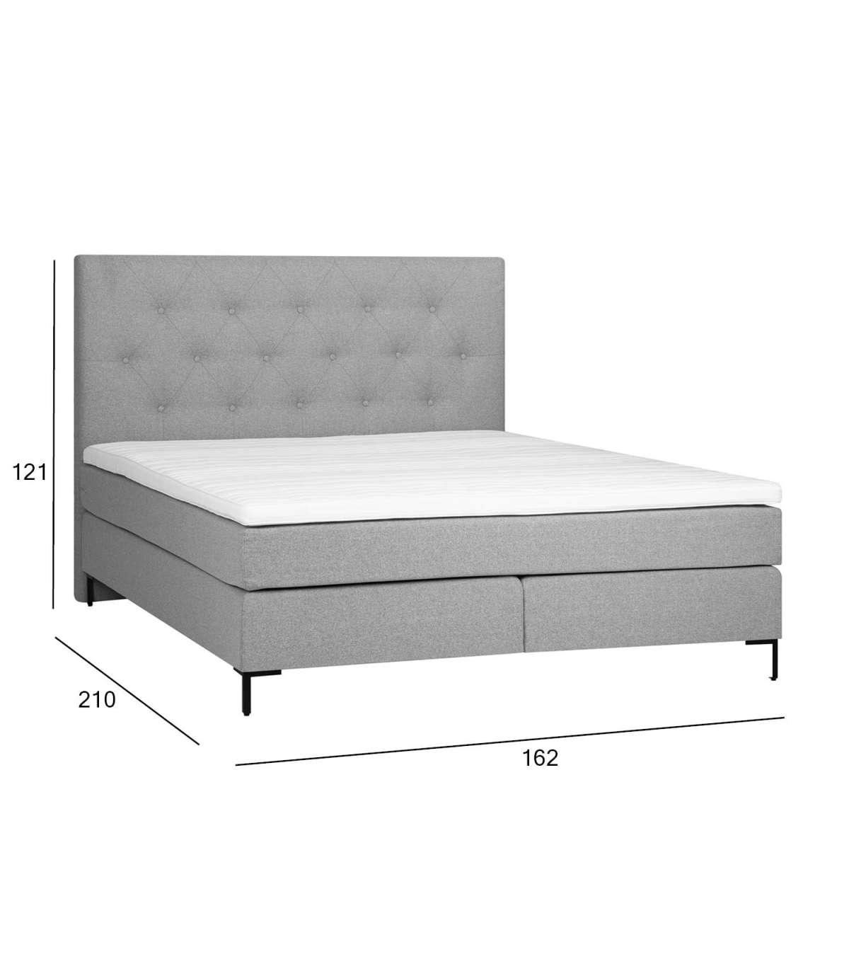 Кровать LEONI 160x200см, с матрасом, серый. Слой поролона толщиной 4 см поверх кровати. Он покрыт полиэстеровой ватой плотностью 200 г/м2. Посередине — пружинный матрас. 250 пружин/м2, высота 13см. Нижняя часть имеет пружинный матрас бонелль. 110 пружин/м2, высота 11см. Каркас кровати изготовлен из массива дерева. Каркас покрыт полиэстеровой ватой плотностью 200 г/м2. Кровать покрыта тканью Martindale 35 000. Четыре ножки сделаны из черного металла. Средняя часть кровати имеет две дополнительные металлические ножки. Высота ножки 10см. Размеры изделия 162x210xH121см. Продукт произведен в ЕС.