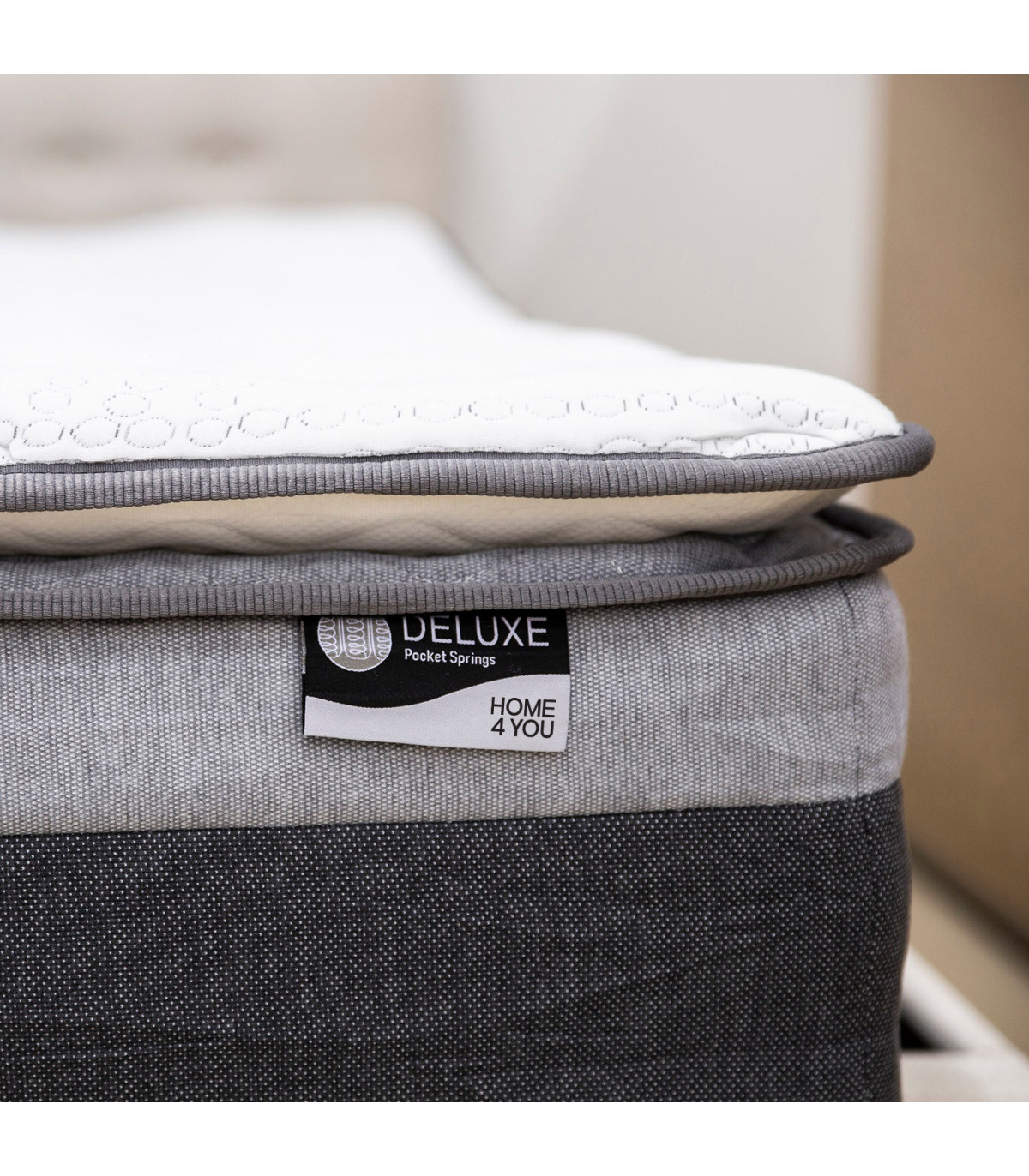 В комплекте матрас 160х200см (86864). Средняя жесткость. Упакованный deluxe-pocket пружинный блок ( 1,9мм / по краям 2,2мм). Матрас с профилированный поролон - обеспечивает наилучшую циркуляцию воздуха внутри матраса. Подходит идеально для аллергиков. Ткань, войлок и хлопок соответствуют международному стандарту Oko-Tex 100. Матрас упакован в рулон. Матрасу требуется до 24 часов, чтобы восстановить его первоначальную форму. Размеры кровати 218,5x165xH104см. Кровать изготовлена из МДФ-пластины и покрыта полиэстерным текстилем. Ножки из массива дерева, цвет: коричневый. Дно кровати входит в комплект.