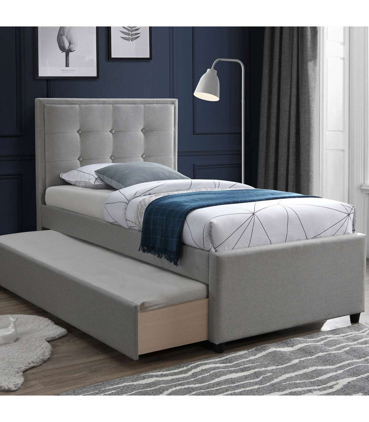 Voodi OSWALDO 90x200cm, kahe madratsiga HARMONY UNO, plaatinahall. Voodi all on mõlemale poole väljatõmmatav sahtel, mida võib kasutada lisamagamiskoha või panipaigana. Voodi korpus on valmistatud MDF plaadist ja kaetud polüesterkangaga. Komplekt sisaldab voodijalgu, peatsit, põhjalippe ja kahte madratsit. Pakitud vedruplokiga madrats on keskmisest jäigema vedrustusega (pocket vedrustus 2,1mm/äärtes 2,2mm). Hele stretch-kangast madratsikate on nahasõbralikust ja pehmest viskoos-polüestrist (kangakaal 240g/m²). Madrats on pehmendatud kvaliteetse ja vastupidava 3cm poroloonikihiga, mis lisab magamismugavust ja pakub kehale piisavat lõõgastust. Kangas, vilt ja vatiin vastavad rahvusvahelisele Oeko-Tex 100 standardile. Madrats on pakitud rulli, et seda oleks lihtsam transportida. Madrats vajab oma esialgse kuju taastamiseks kuni 2 tundi aega. Eemaldage ettevaatlikult kilepakend ja asetage madrats voodile. Madratsi mõõdud on 90x200xH20cm. Voodi üldmõõdud on 98x215,5xH117,5cm.