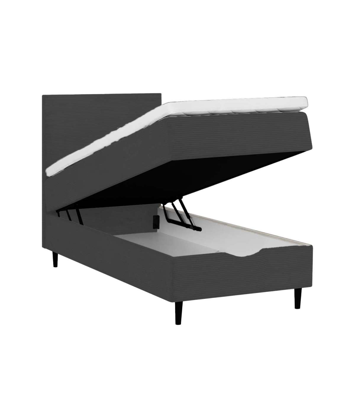 Voodi kattemadrats on poroloonist ja selle paksus on 7cm. Kattemadratsi all asub pocket-vedrustusega madrats. 210vedru/m2, vedru kõrgus 13cm. Madratsi jäikus: keskmine. Voodi raam on valmistatud puidust, puitlaast- ja puitkiudplaadist. Voodi all asub ruumikas panipaik. Voodijalad on valmistatud puidust, 14cm kõrged. Voodipeats on voodiga sama lai, selle paksus on 7cm, kõrgus 105cm. Ühenduselemendid on lisatud. Voodi on kaetud kangaga, 30 000 Martindale´i. Voodi kõrgus maast on 70cm. Toote mõõdud on 91x208xH119cm. Toode on valmistatud EL-is.