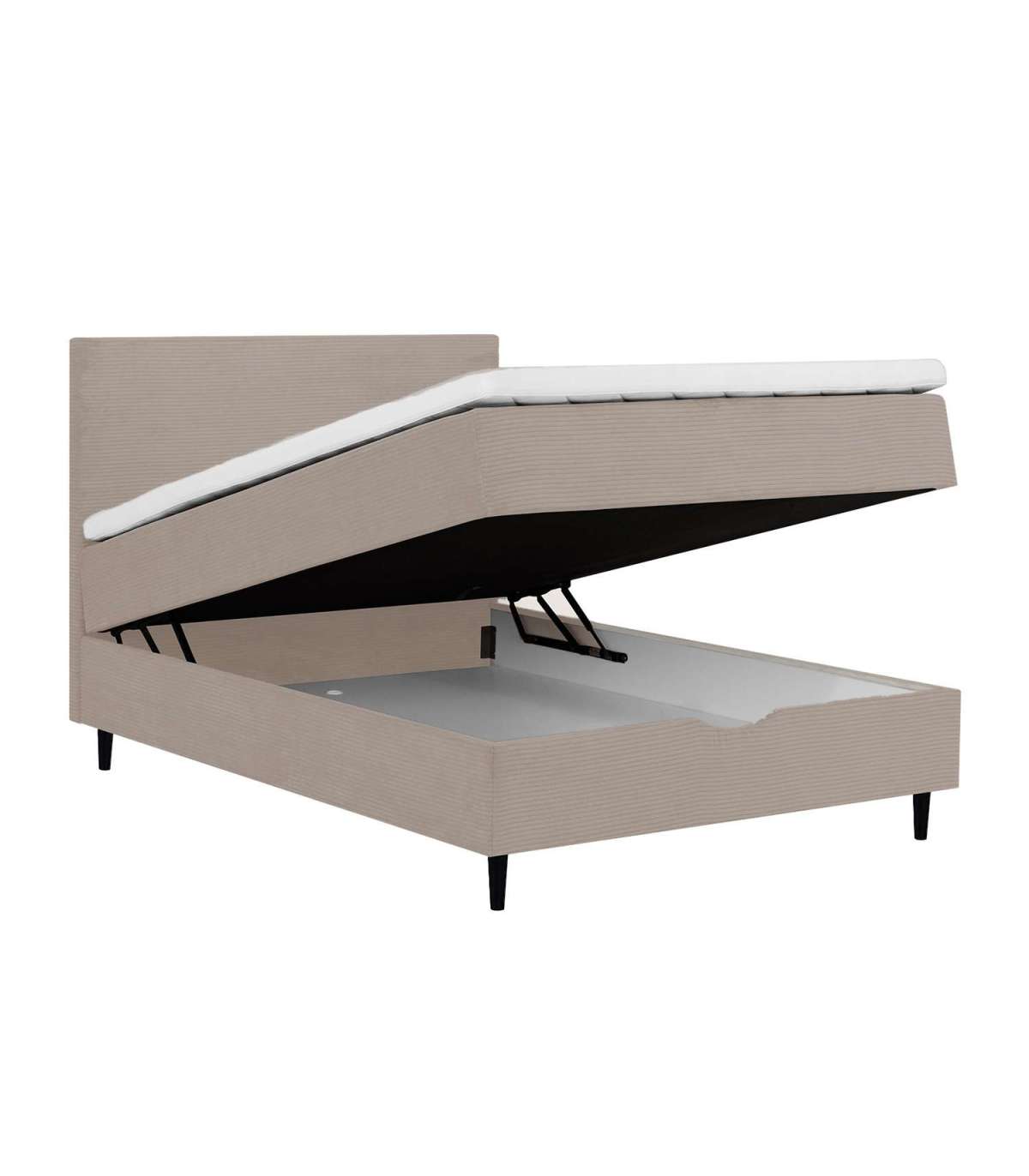 Voodi kattemadrats on poroloonist ja selle paksus on 7cm. Kattemadratsi all asub pocket-vedrustusega madrats. 210vedru/m2, vedru kõrgus 13cm. Madratsi jäikus: keskmine. Voodi raam on valmistatud puidust, puitlaast- ja puitkiudplaadist. Voodi all asub ruumikas panipaik. Voodijalad on valmistatud puidust, 14cm kõrged. Voodipeats on voodiga sama lai, selle paksus on 7cm, kõrgus 105cm. Ühenduselemendid on lisatud. Voodi on kaetud kangaga, 90 000 Martindale´i. Voodi kõrgus maast on 70cm. Toote mõõdud on 141x208xH119cm. Toode on valmistatud EL-is.
