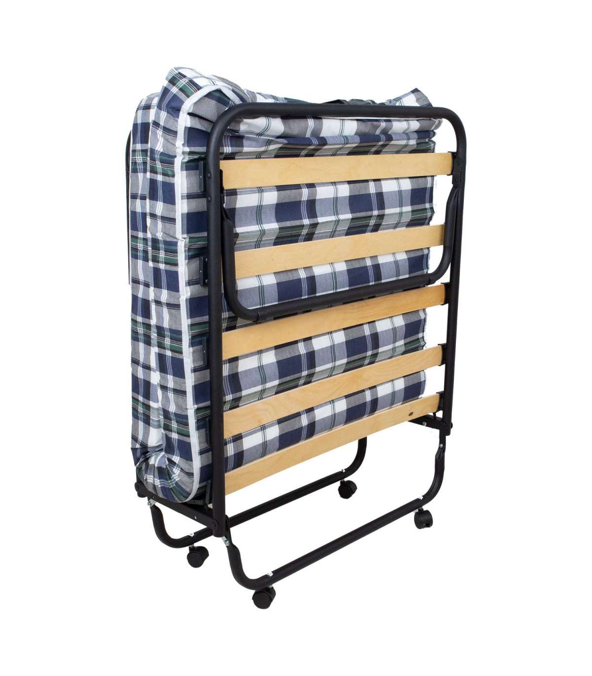 Раскладушка BERGAMO 80x190xH26см, с матрасом. В комплект входит поролоновый матрас 16кг/м?, толщина матраса 10см. Материал чехла - ткань TNT (45% вискоза, 45% полиамид, 10% полиэстер). У кровати деревянные рейки на основании. Размер кровати в сложенном виде 80х102х37,5см. Грузоподъемность 100 кг. Кровать предназначена для домашнего использования.