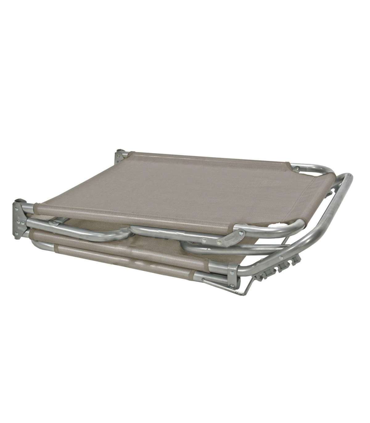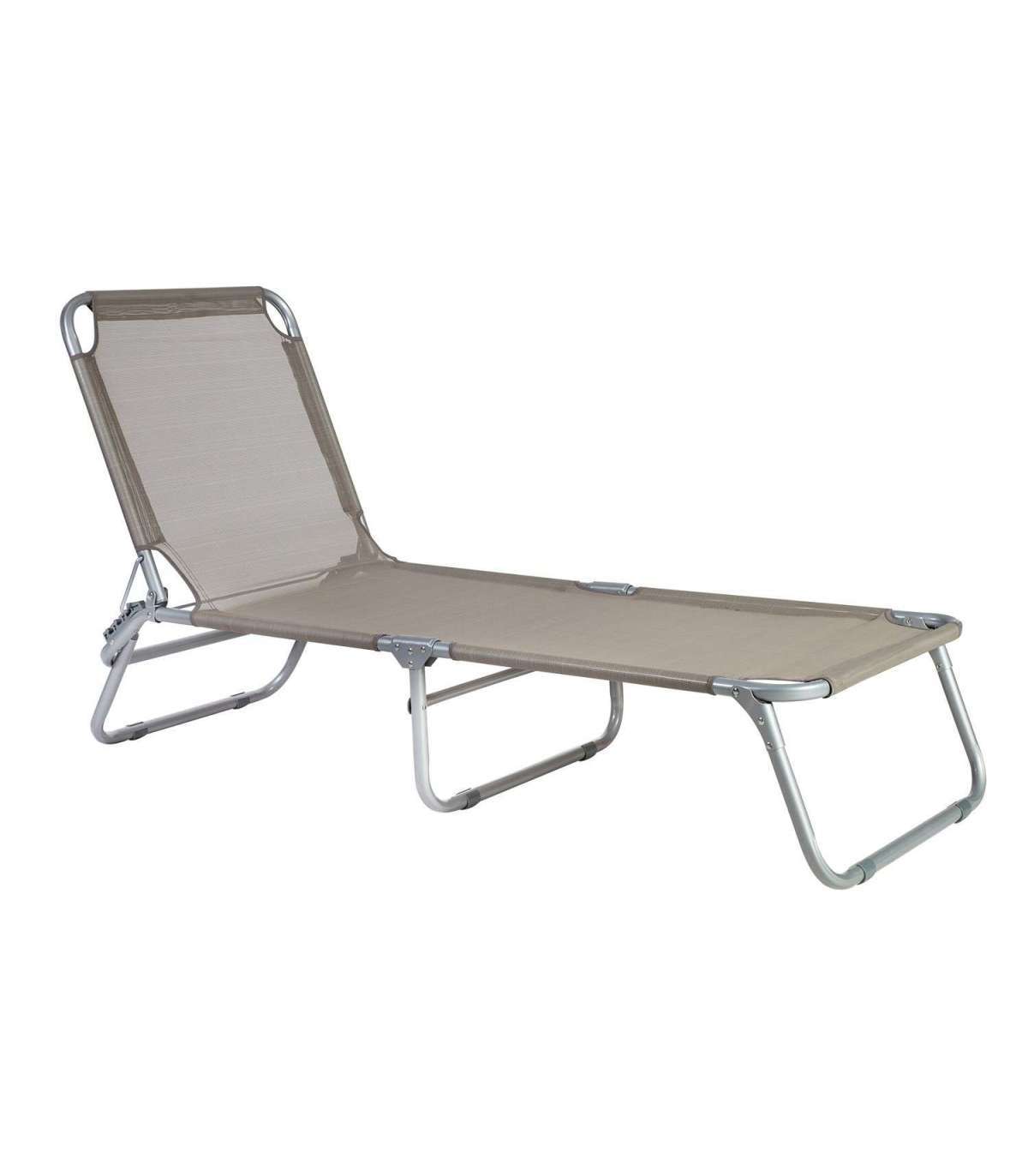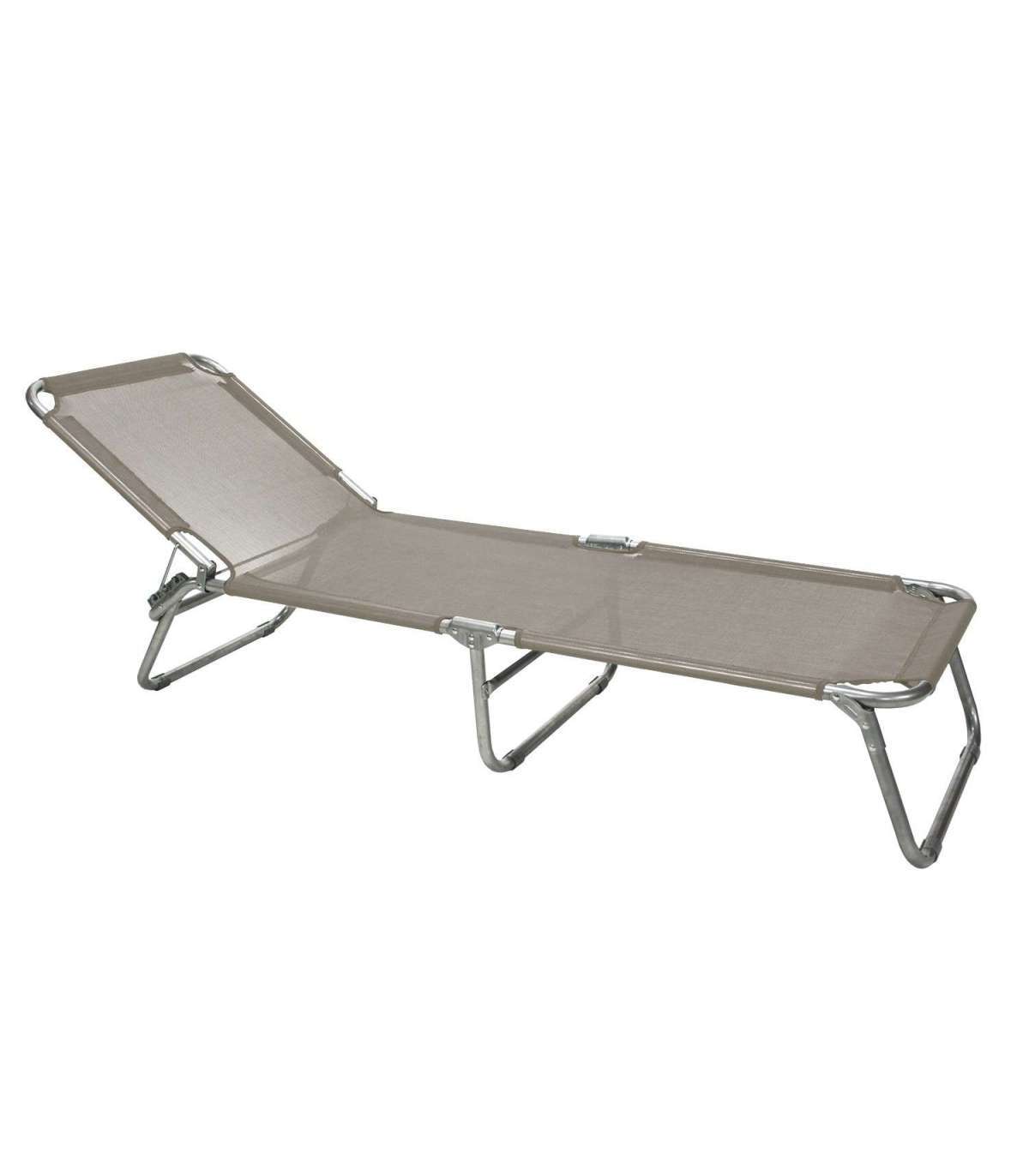 Шезлонг TRIP 57x191xH28см. Кровать покрыта серовато-коричневой тканью textiline. Стальной каркас серебристый. Изделие устойчиво в изменчивых погодных условиях. Размеры изделия 57x191xH28см. Грузоподъемность 100 кг.