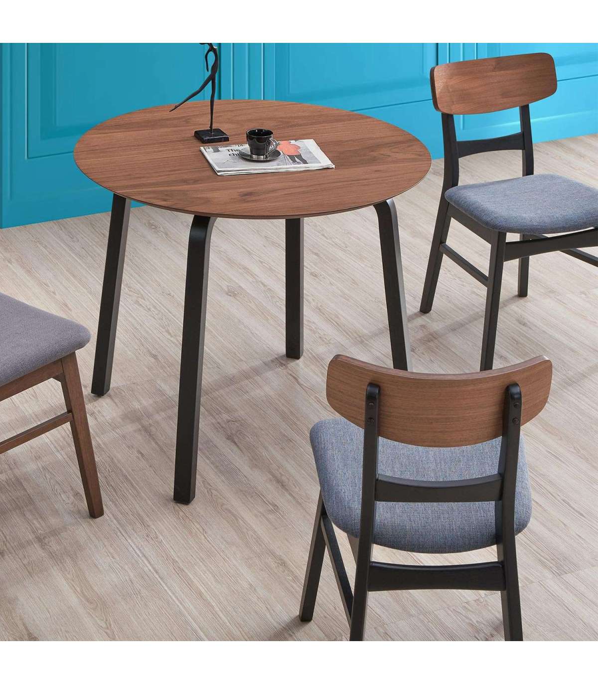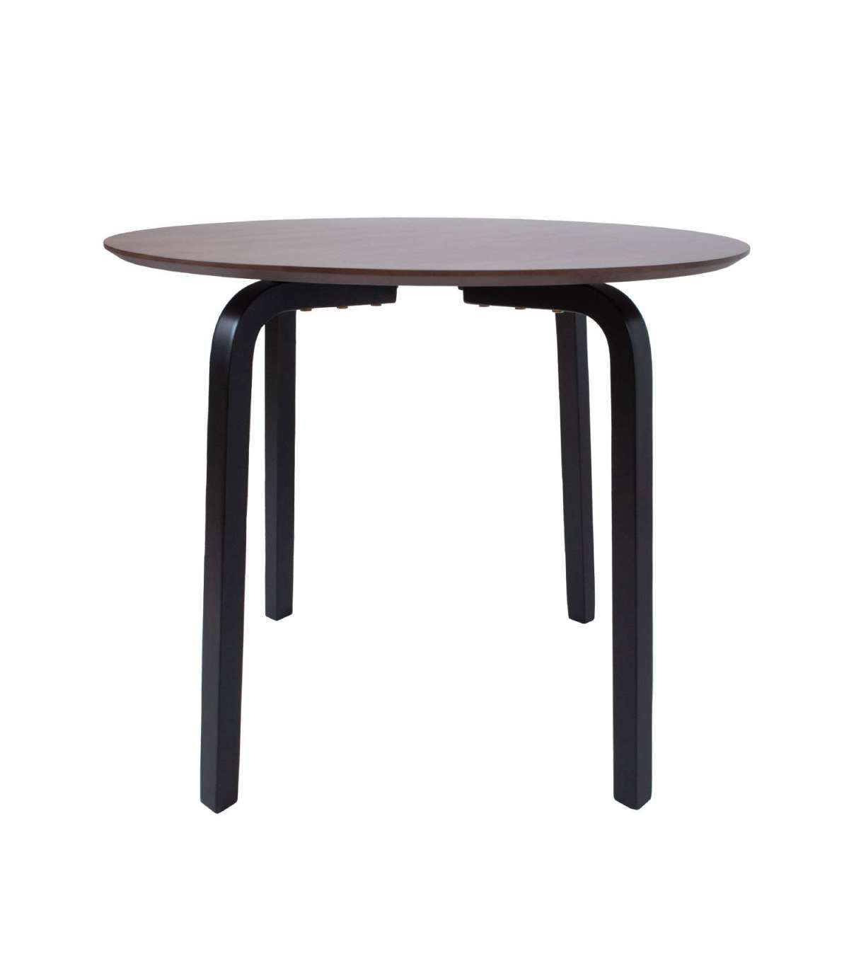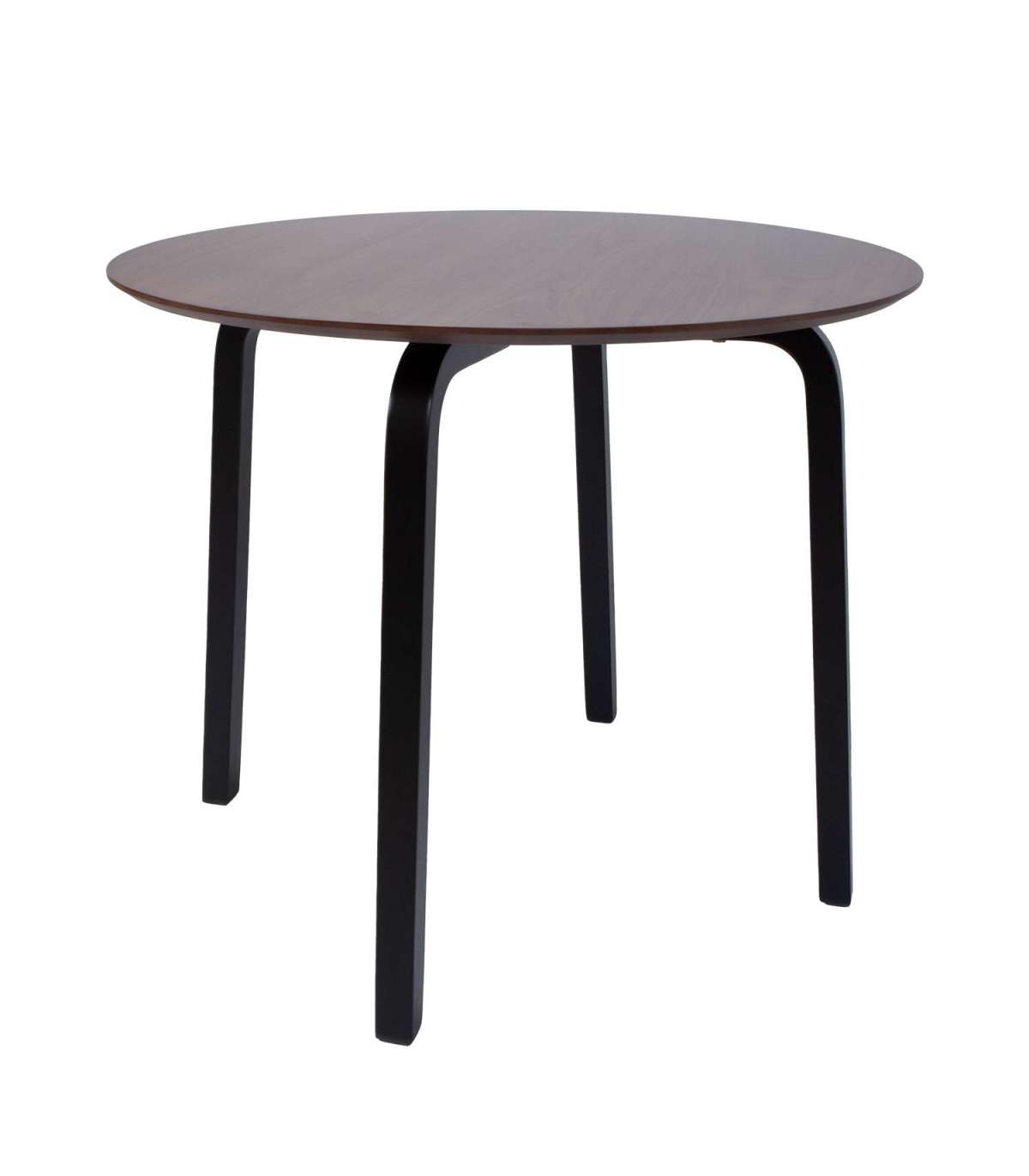 Söögilaud MIA D90xH75cm, pähkel. Lauaplaat: 18mm MDF naturaalse pähklispooniga, lakitud. Jalad on valmistatud täispuidust ja värvitud mustaks.