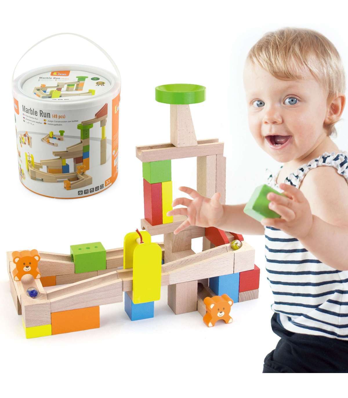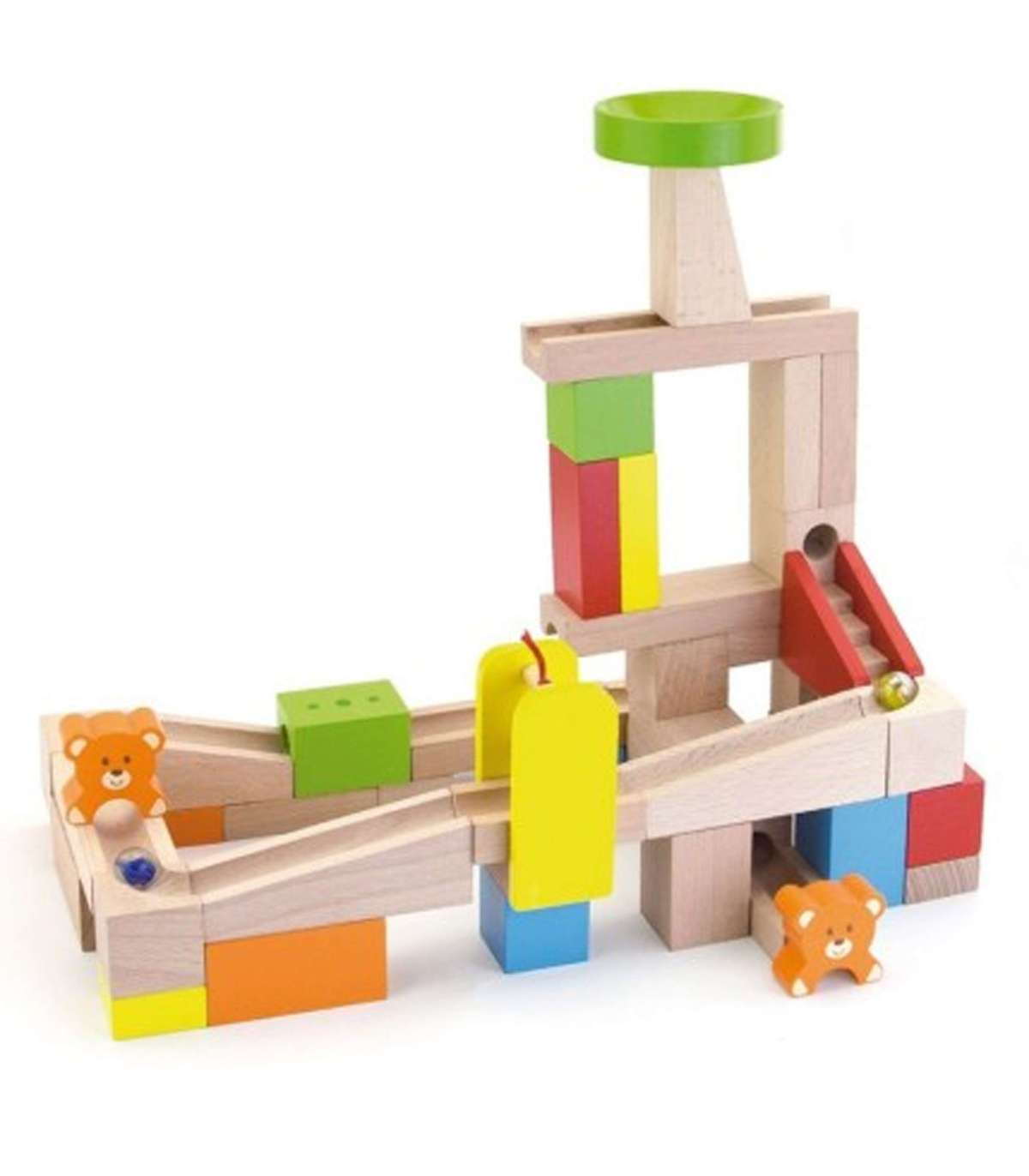 Budowla Kulodrom, состоящий из высококачественных деревянных натуральных кубиков, предлагает маленьким архитекторам множество возможностей для творческой, исследовательской и изобретательной игры. В наборе есть 10 карточек с комбинациями расположения шарикового пути разной степени сложности. Попробуйте построить трассу, показанную на карточке, или создайте собственную фантастическую конструкцию из 49 деталей! В наборе есть ступеньки и мишки, которые обеспечивают дополнительное развлечение для вашего малыша. Все упаковано в удобное ведерко с ручкой, облегчающее безопасное хранение деталей и переноску игрушки.