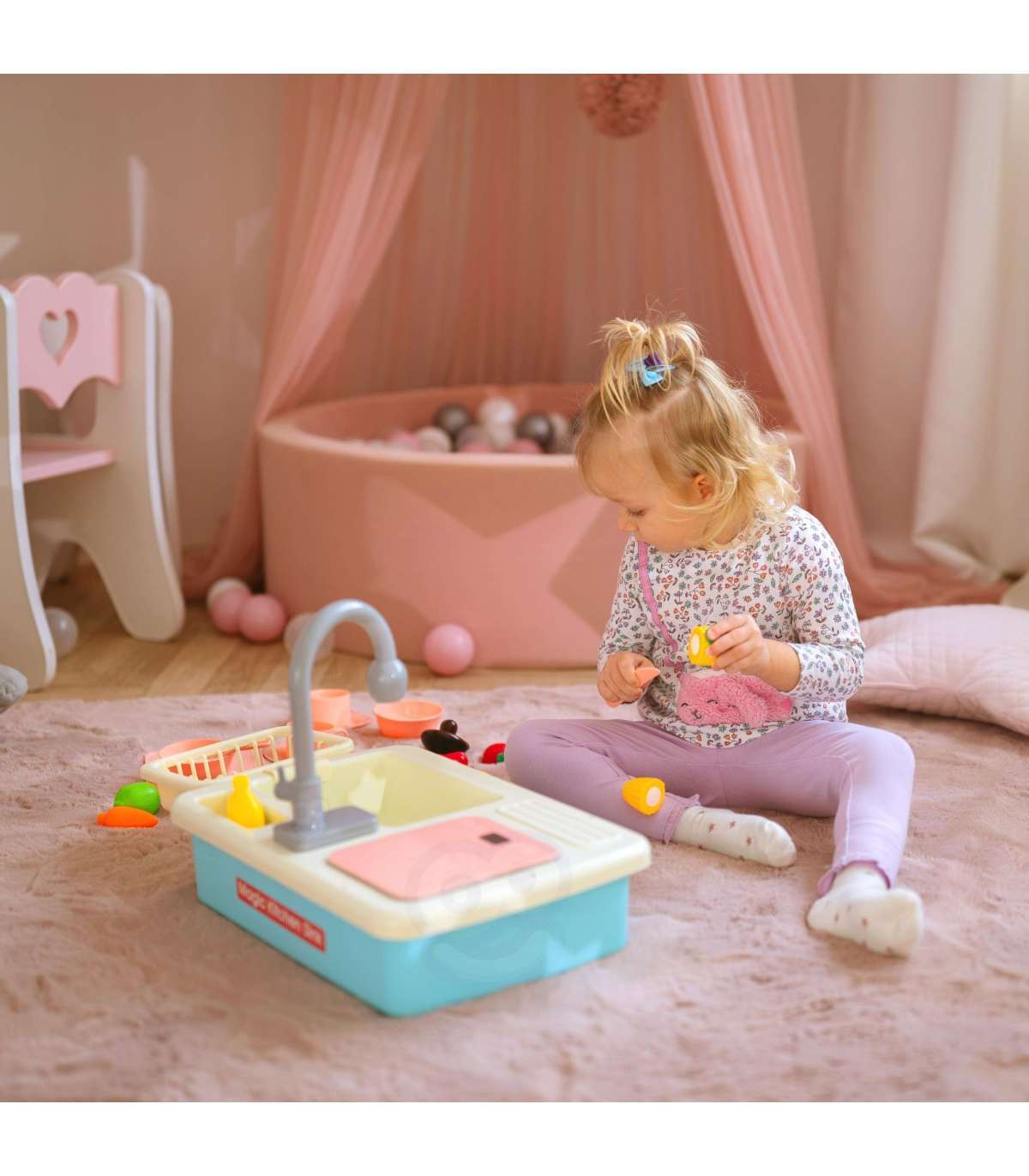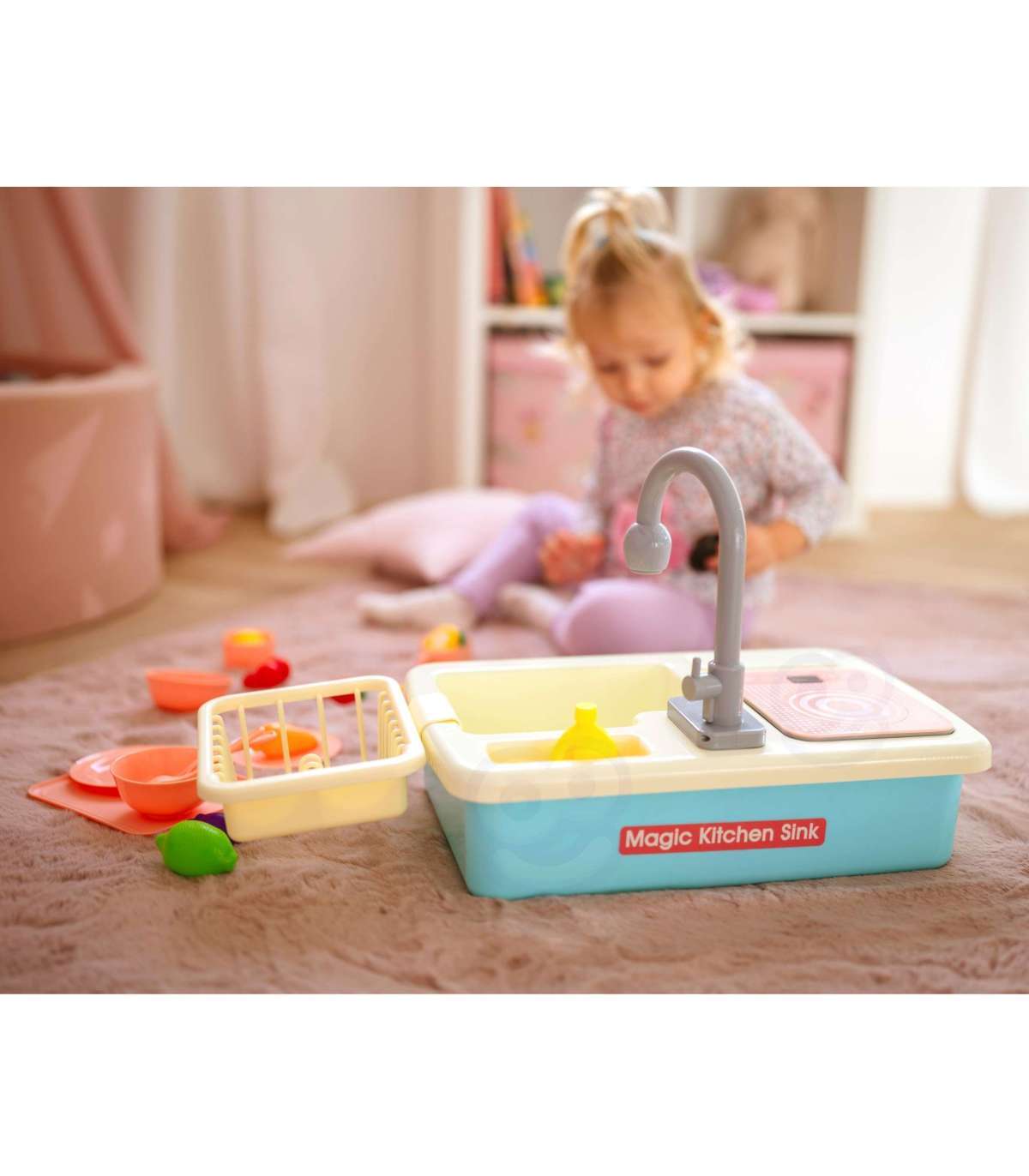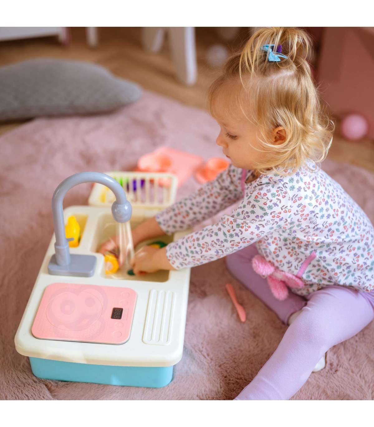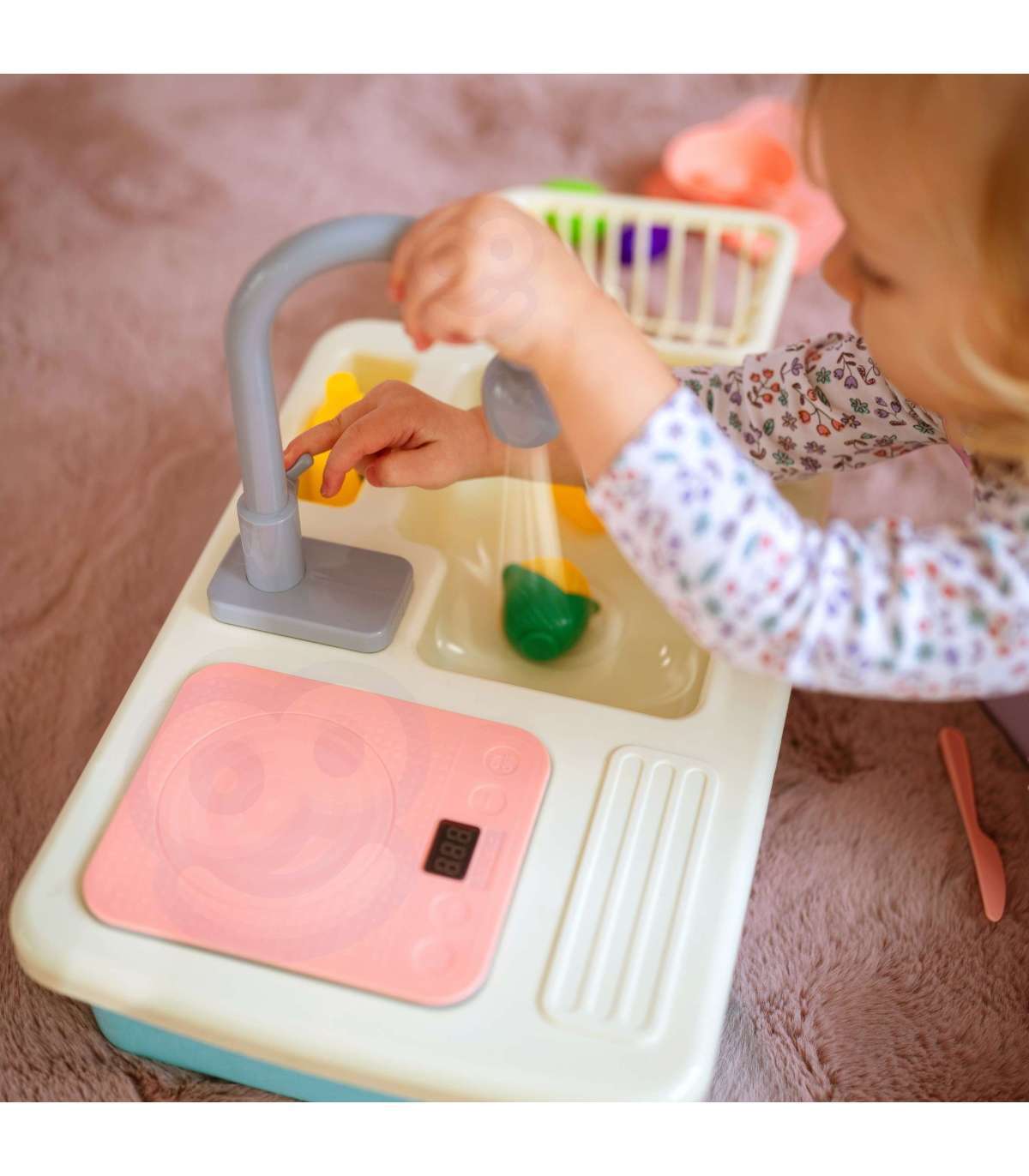 Раковина-плита 2 в 1 от марки WOOPIE позволит детям готовить и мыть посуду как их родители — подражать с раннего возраста! Игрушка точно воспроизведена, благодаря чему ребёнок чувствует, что выполняет настоящие кухонные действия. В ней есть подвижные элементы, такие как кран, из которого течёт настоящая вода. Достаточно налить воду в чашу и наблюдать, как ребёнок играет, а после просто опорожнить нижнюю чашу. Кроме того, фрукты и овощи соединены липучкой, поэтому ваш ребёнок может разрезать их пополам, как настоящие продукты! Игра в приготовление пищи, мытьё посуды и выполнение похожих работ помогает детям приобрести чувство ответственности и самостоятельности, что является важной частью социально-эмоционального обучения.