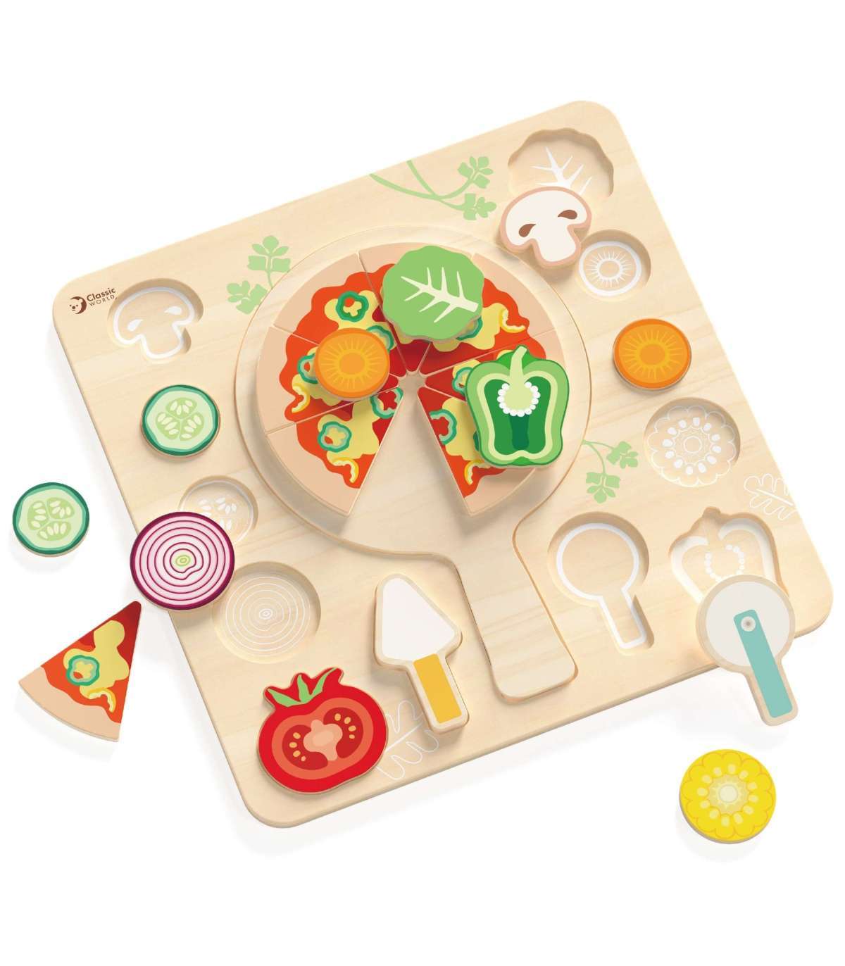 CLASSIC WORLD Деревянная пицца для резки — пазл с овощами, 22 элемента.