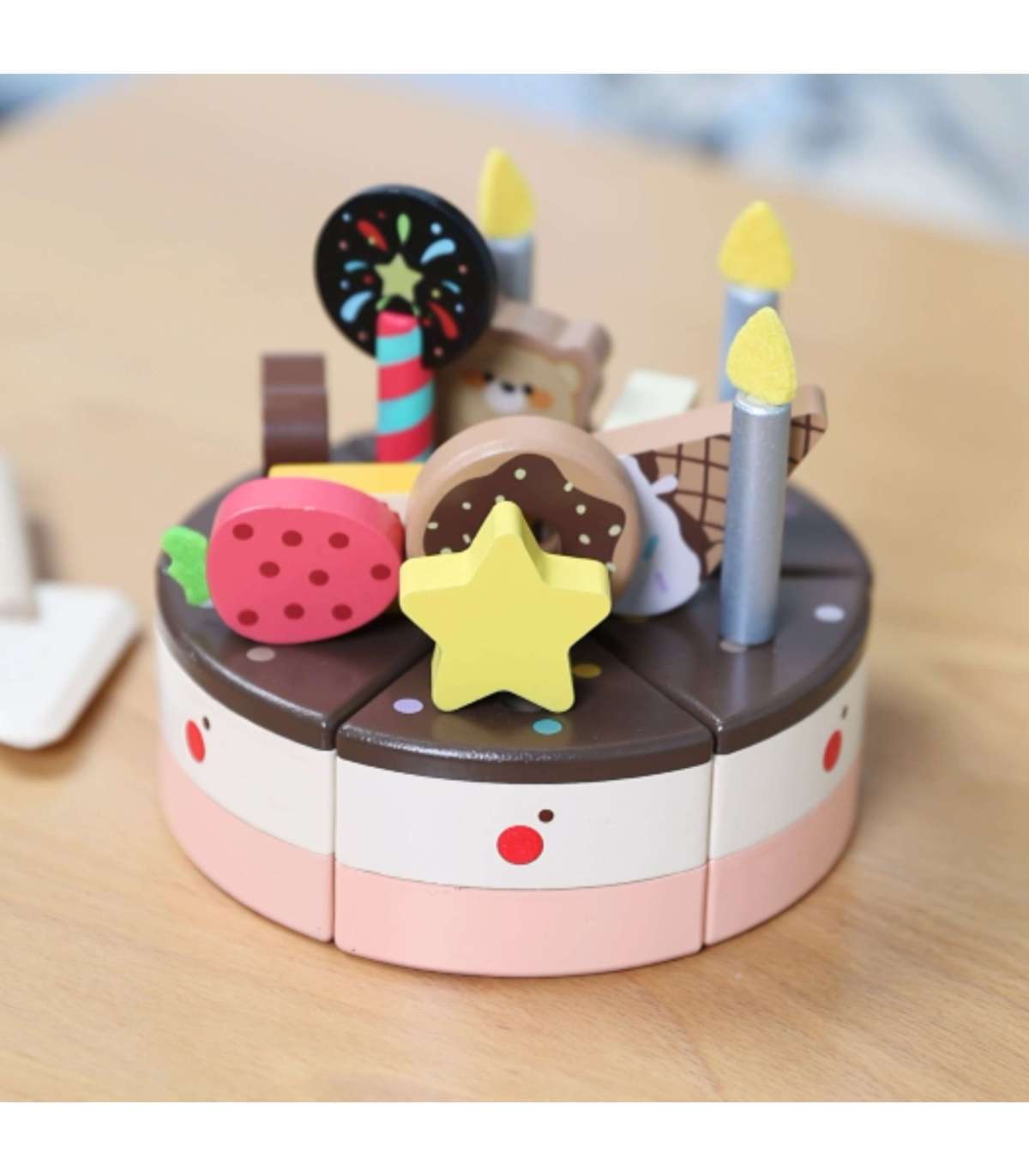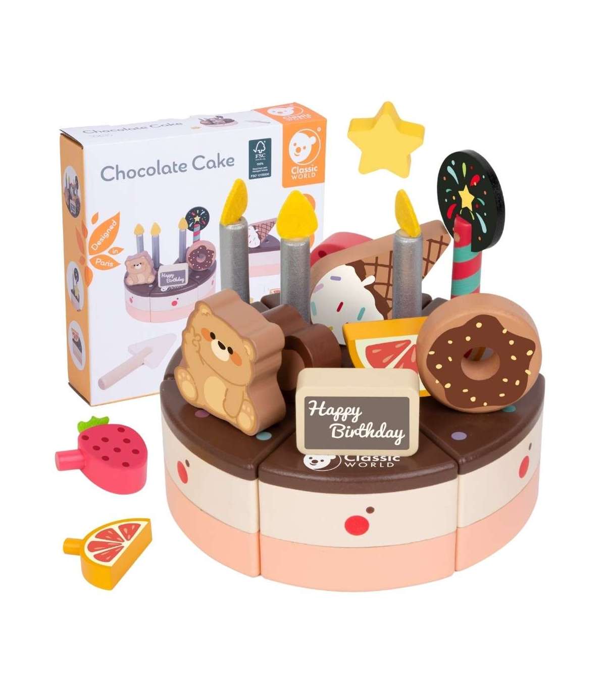 CLASSIC WORLD деревянный торт на день рождения для нарезания, 19 элементов