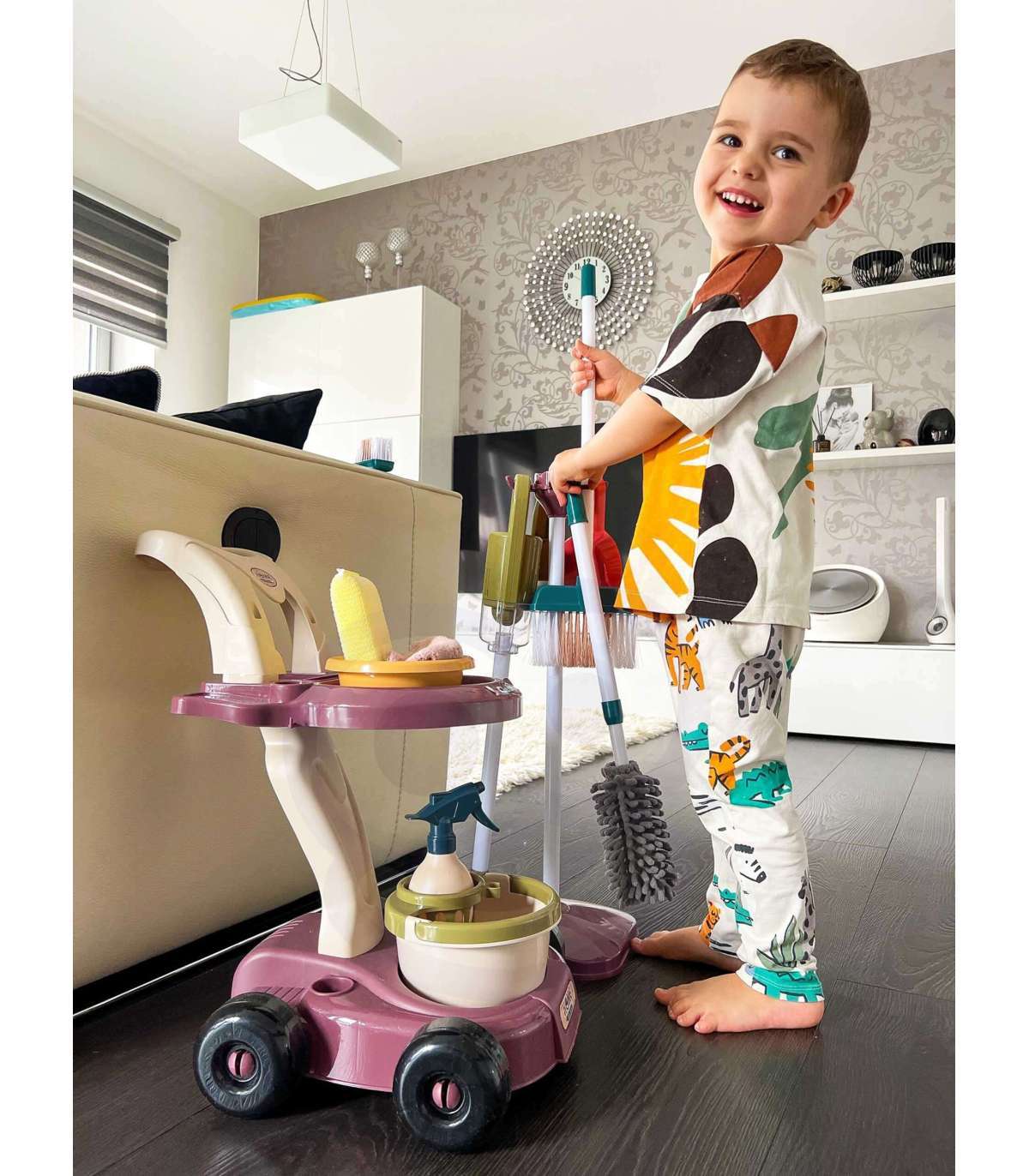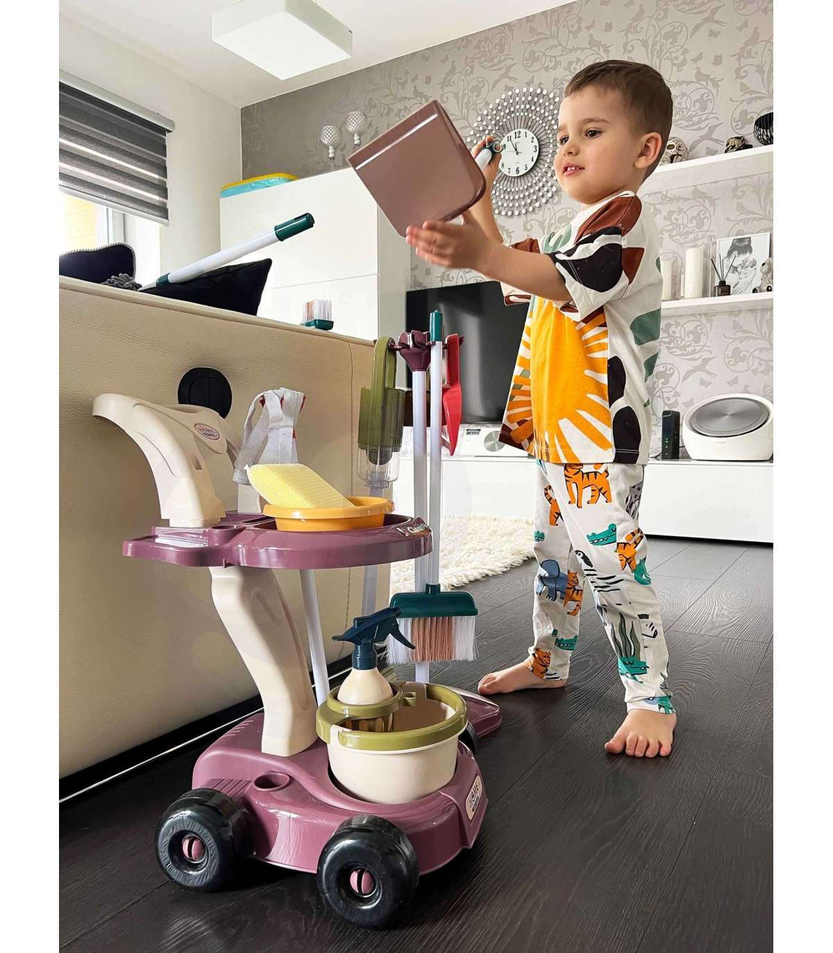 Zestaw sprzątający od renomowanej marki Woopie to idealny pomysł na prezent dla małego dziecka. Ten wysoce profesjonalny zestaw jest odwzorowaniem prawdziwych sprzętów służących dorosłym do robienia porządków. Brązowy wózek został wyposażony w dodatkowe akcesoria, aby dziecko mogło pomóc rodzicom w sprzątaniu. Zabawa w sprzątanie od najmłodszych lat może być świetnym sposobem, aby nauczyć się dbać o czystość. Maluchy uwielbiają naśladować dorosłych, a z takim zestawem będzie to dużo prostsze!
