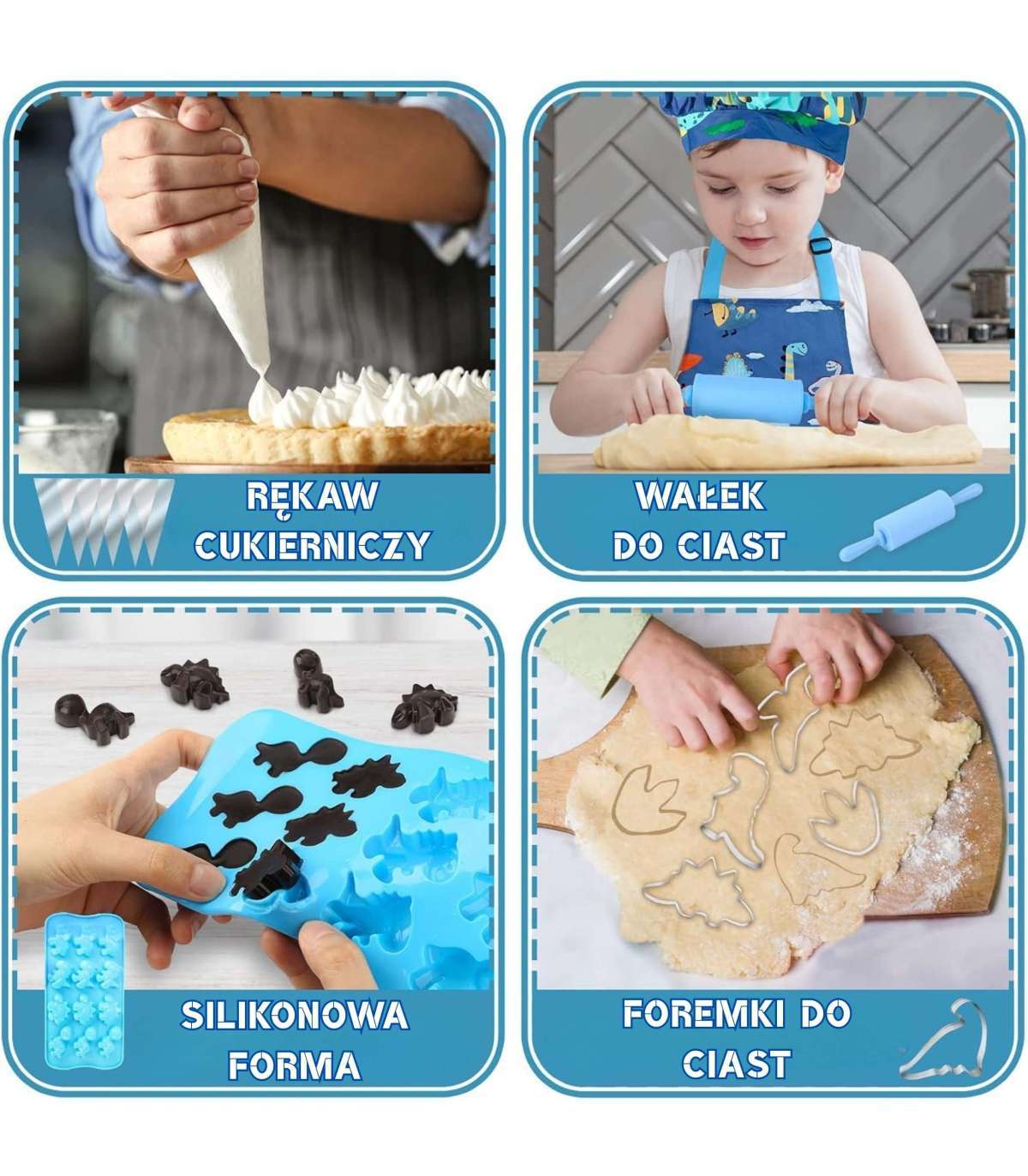 - - Kompletny zestaw do wyrabiania, pieczenia, dekorowania i odmierzania