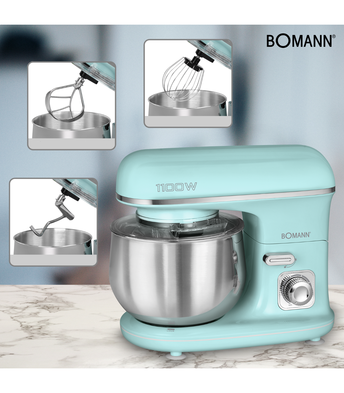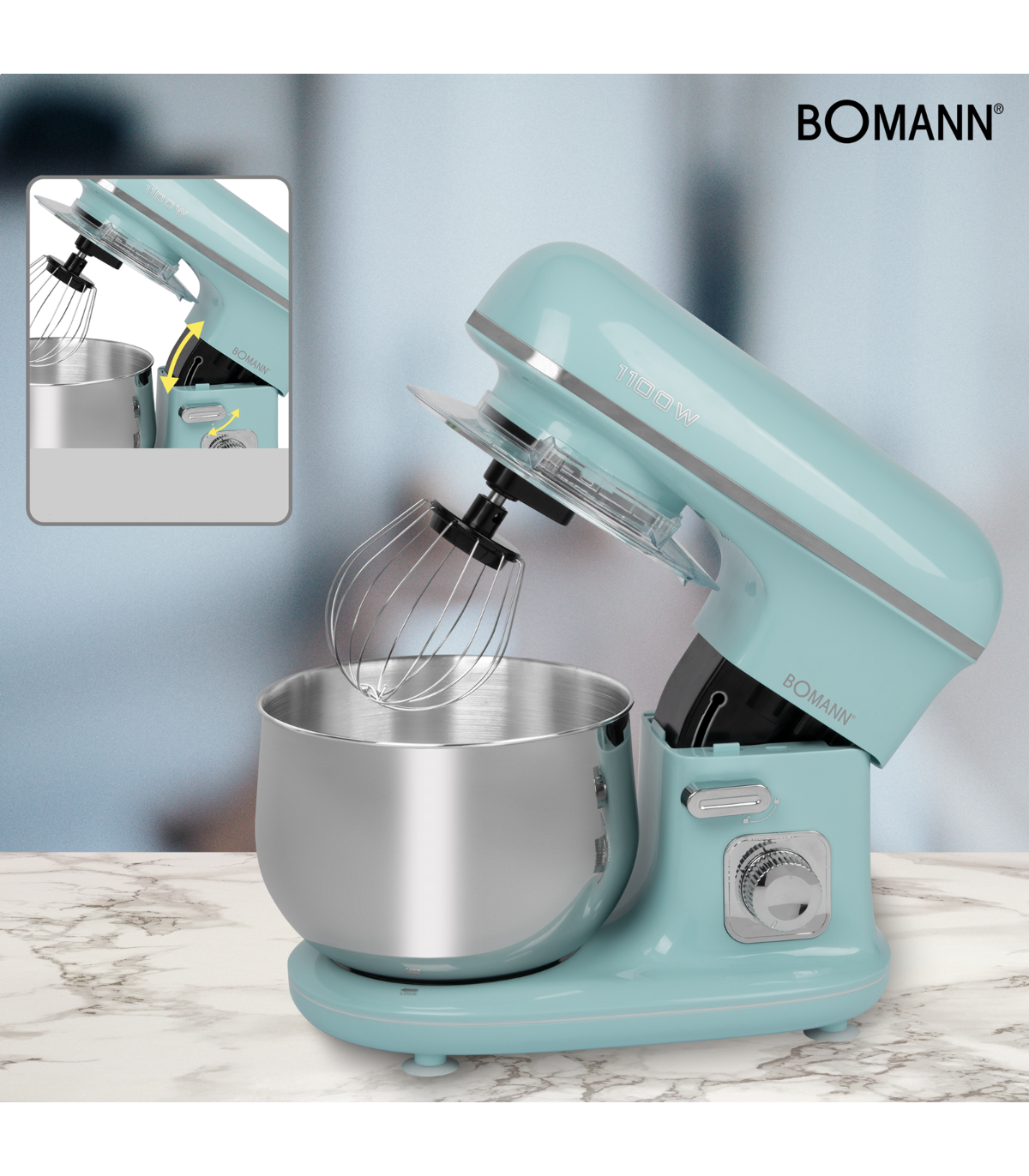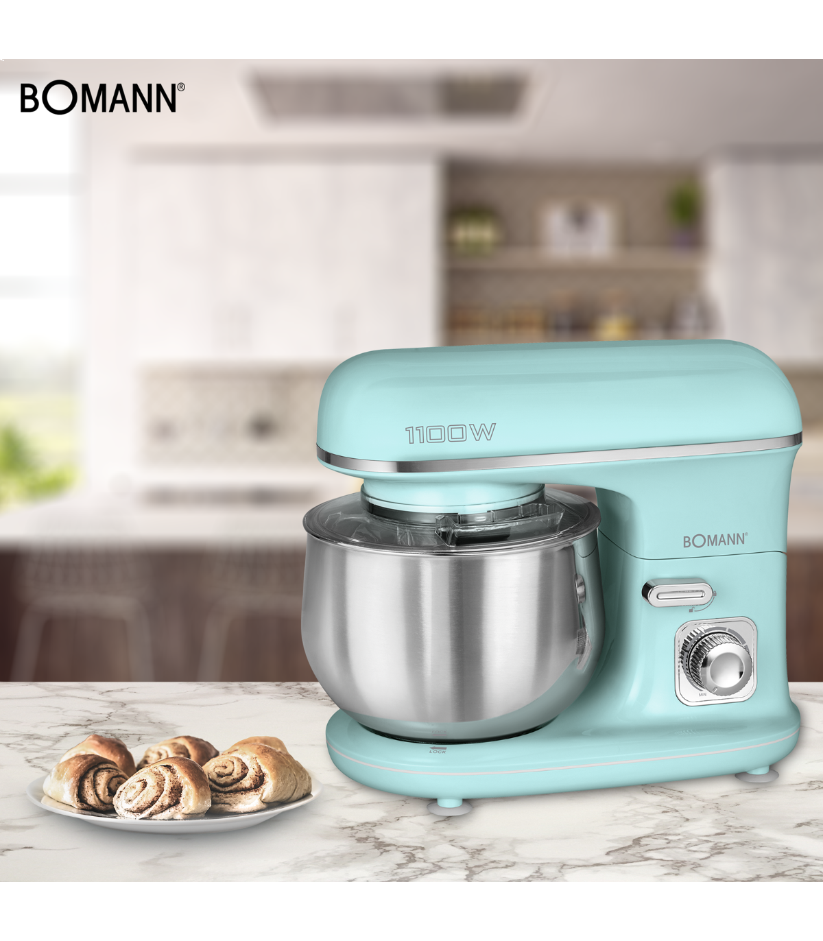 Airy & Perfect - With the powerful kneading machine including stepless electronic speed control and robust special gear, you can prepare perfect dough in no time (approx. 2.5 - 3 kg). The large 5 liter stainless steel bowl offers enough space for your ingredients.Top Features — The appliance has a transparent splash guard lid with a refill opening, so additional ingredients can be added during operation. The lid is removable for easy cleaning in the dishwasher. Suction feet ensure that the kneading machine stands securely. It also impresses with a high-quality rotary switch, a safety circuit and a keyless chuck for the tool holder.