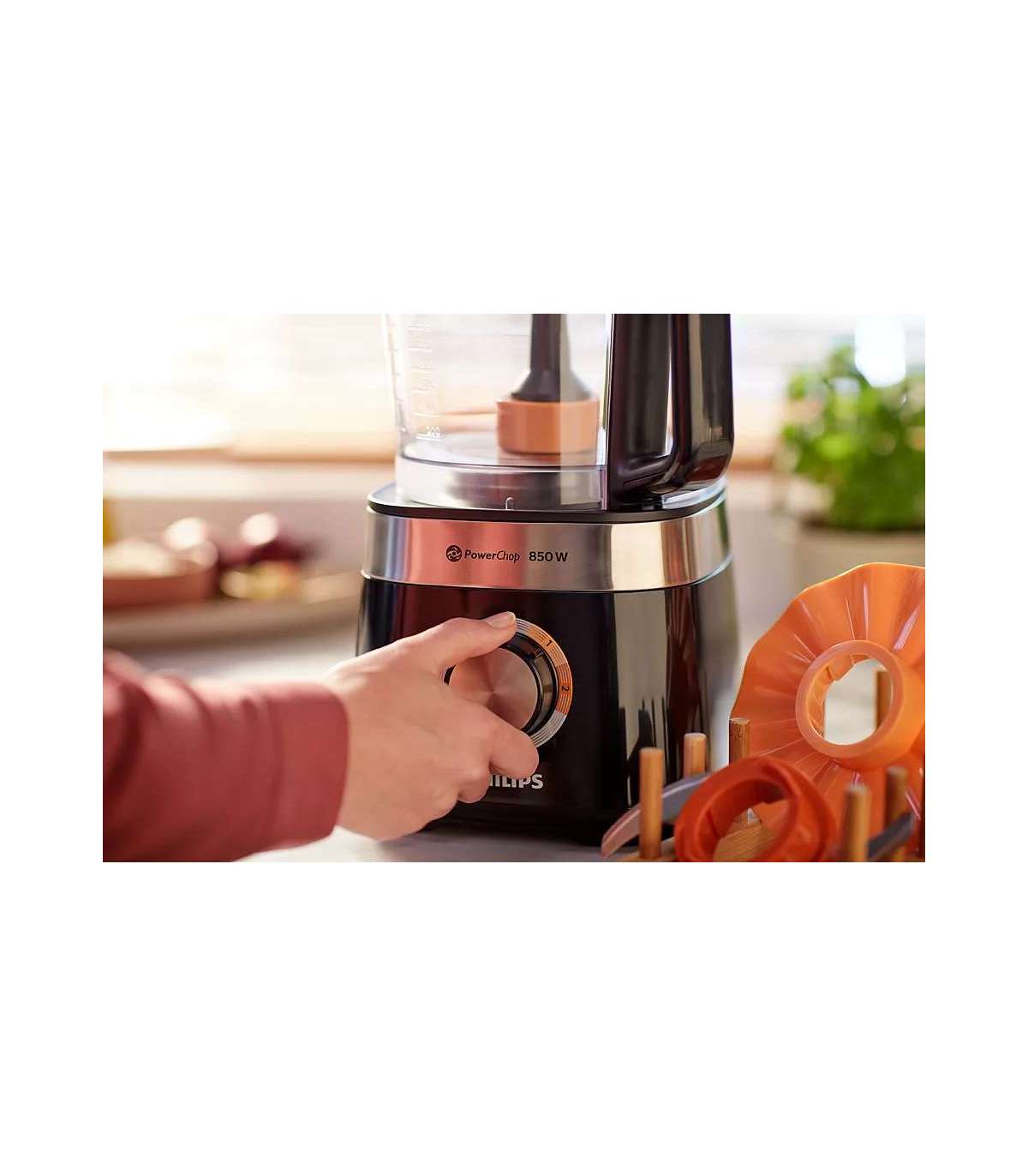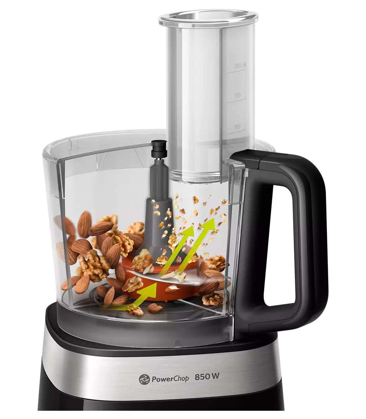 The PowerChop technology is a combination of blade shape, cutting angle and inner vessel that allows you to perfectly cut both soft and hard products