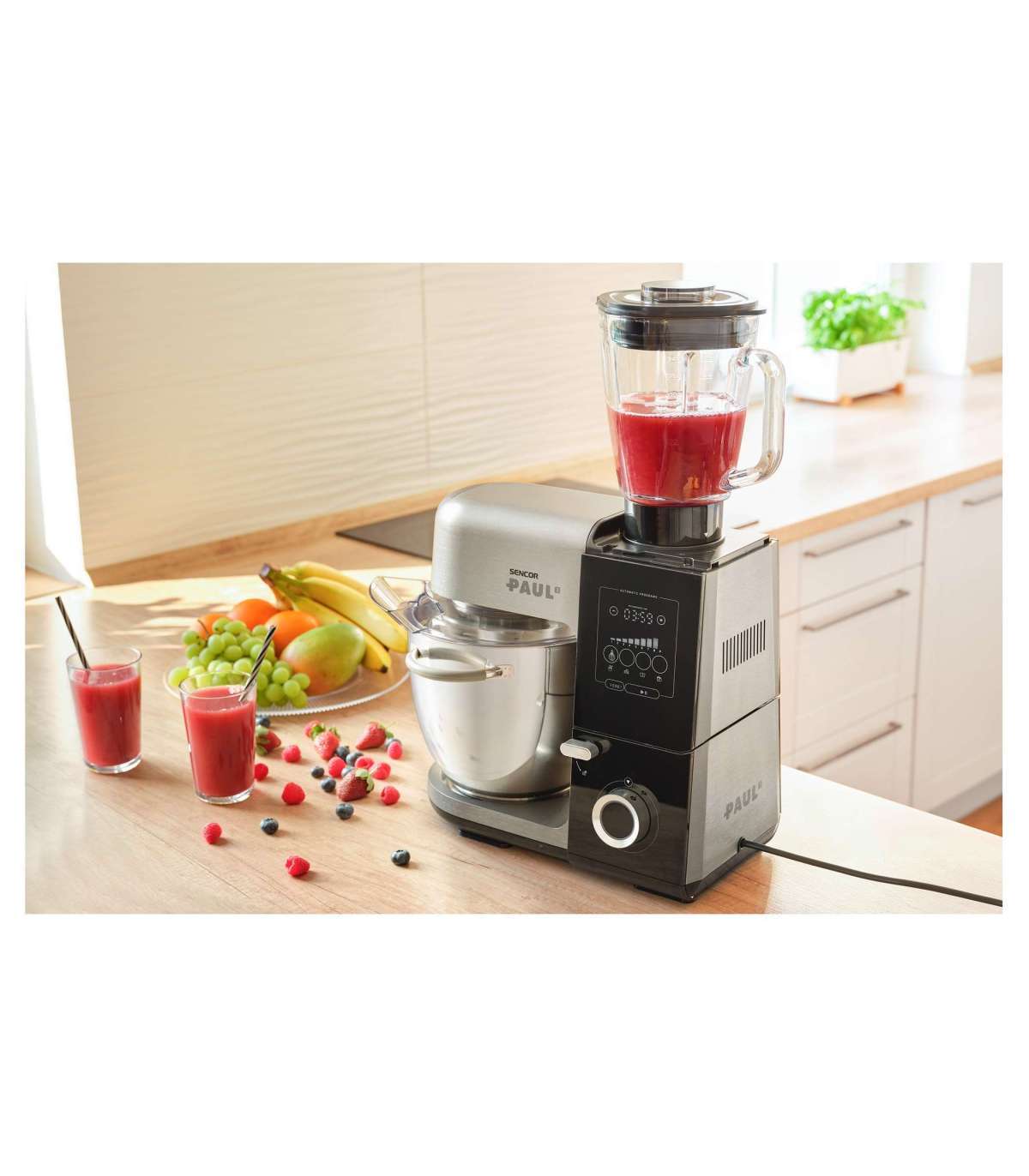 Strong metal body and metal gearing of the food processor Sencor STM8950 are combined with a powerful 1800W motor and LED control panel with preset programs.