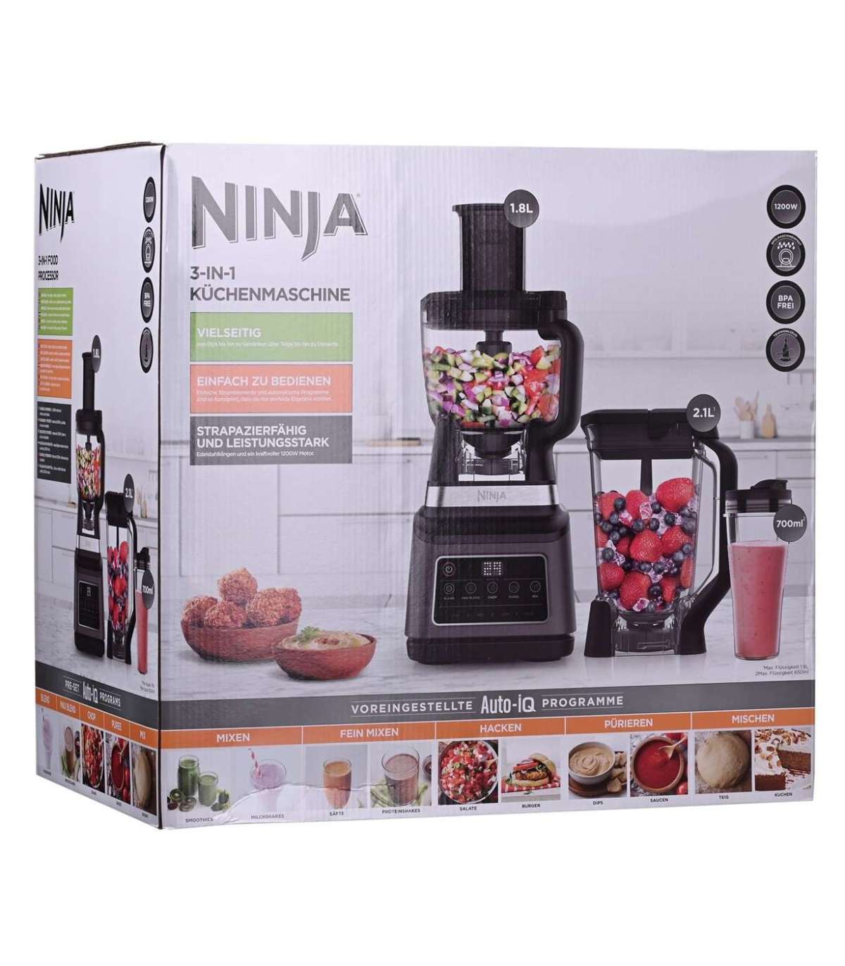 Ninja BN800 food processor 1200 W 1.8 L Black, Silver
