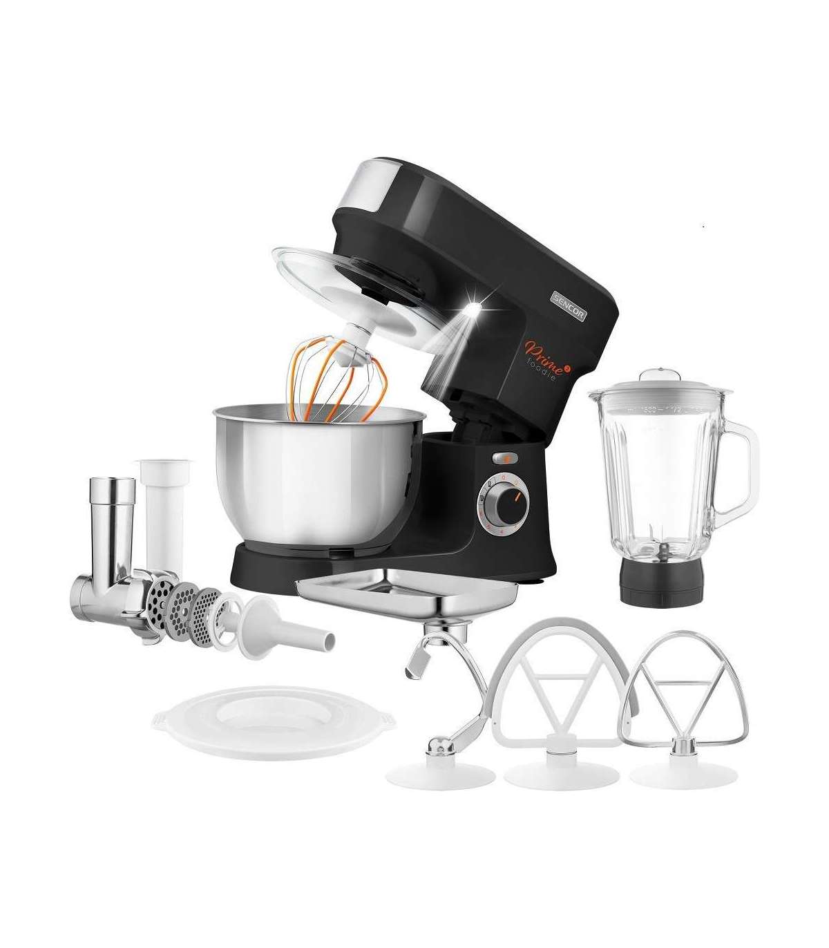 Mixer: 4 advanced attachments for kneading, whisking; Special FLEXI Beater & FLEXI Whisker for light dough, unique magnetic lids for more convenience
