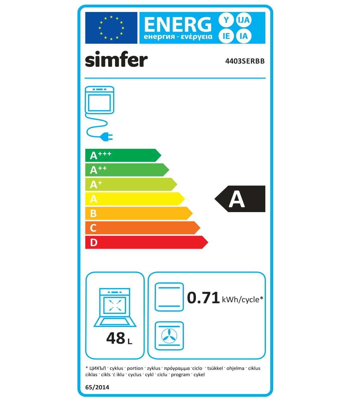 Simfer | Cooker | 4403SERBB | Hob type Gas | Oven type Electric | White | Width 50 cm | Electronic ignition | Depth 55 cm | 48 L