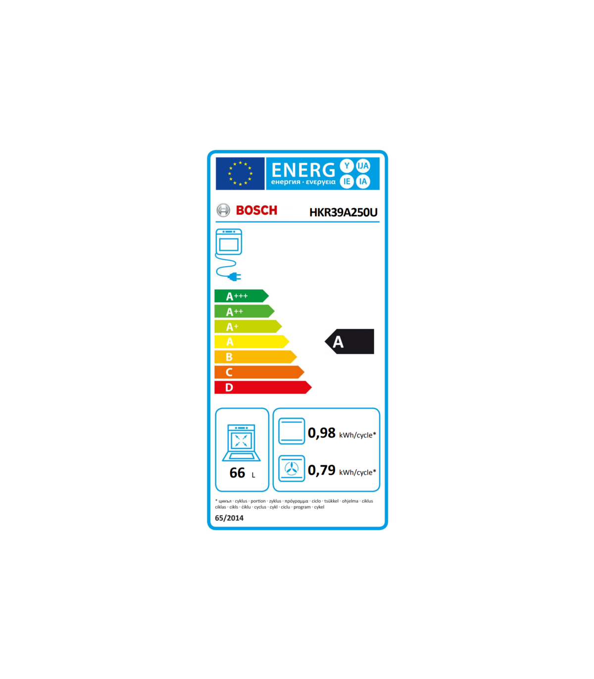 Bosch | Cooker | HKR39A250U | Hob type Vitroceramic | Oven type Electric | Stainless steel | Width 60 cm | Electronic ignition | Grilling | LED | Depth 60 cm | 66 L