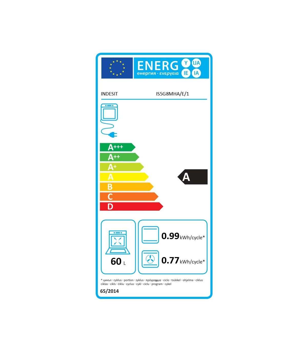 INDESIT Cooker IS5G8MHA/E/1 Hob type Gas Oven type Electric Anthracite Width 50 cm Grilling Depth 60 cm |