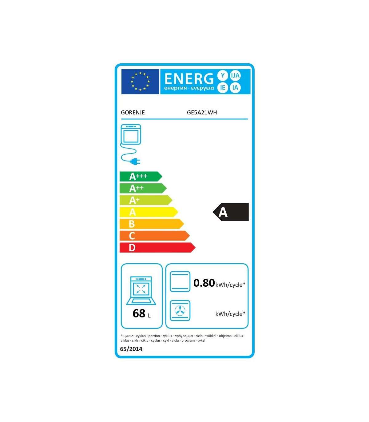 Gorenje Cooker GE5A21WH Hob type Electric Oven type Electric White Width 50 cm Grilling Depth 59.4 cm 68