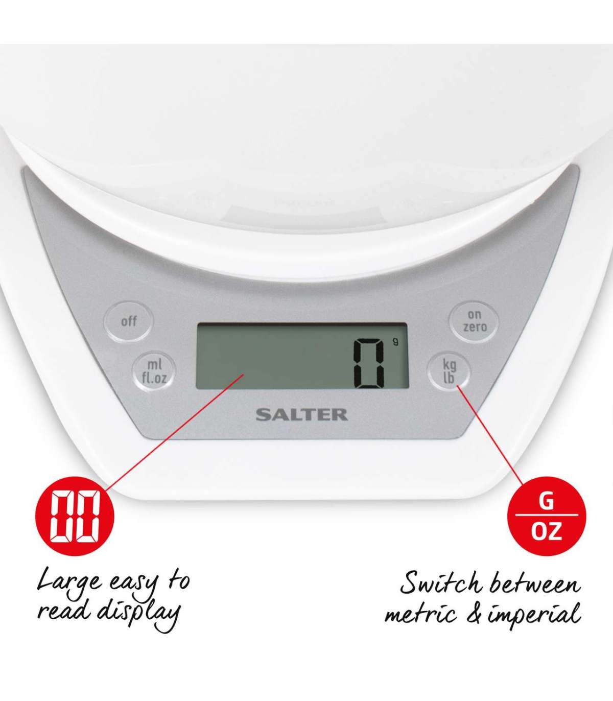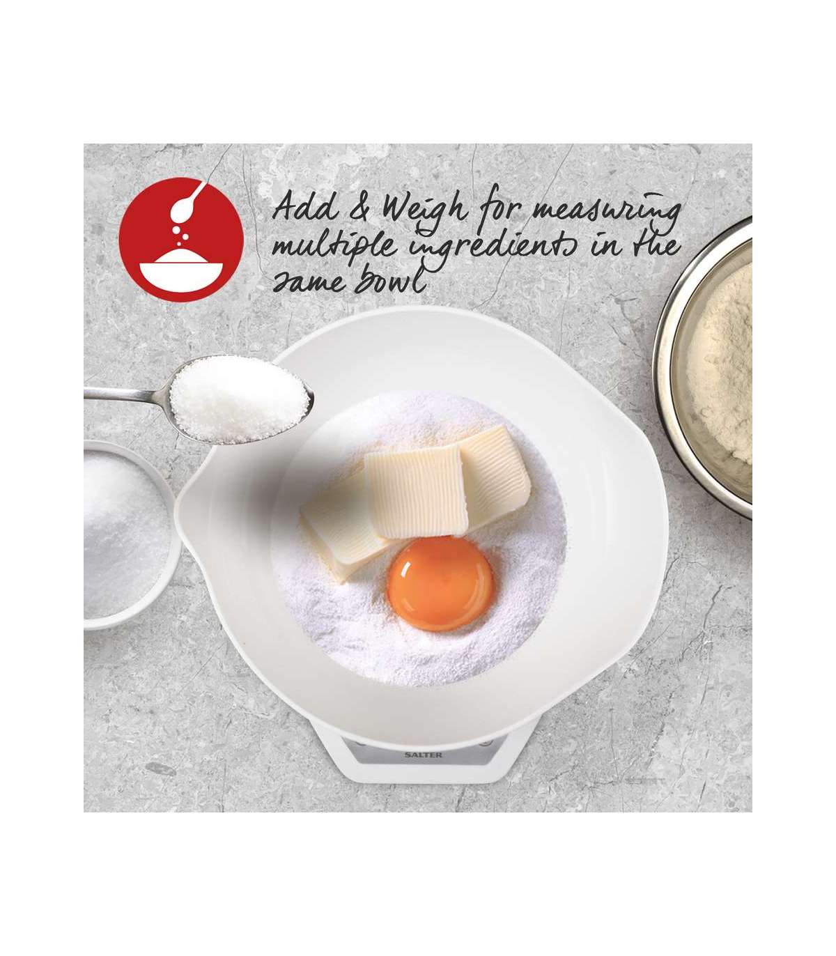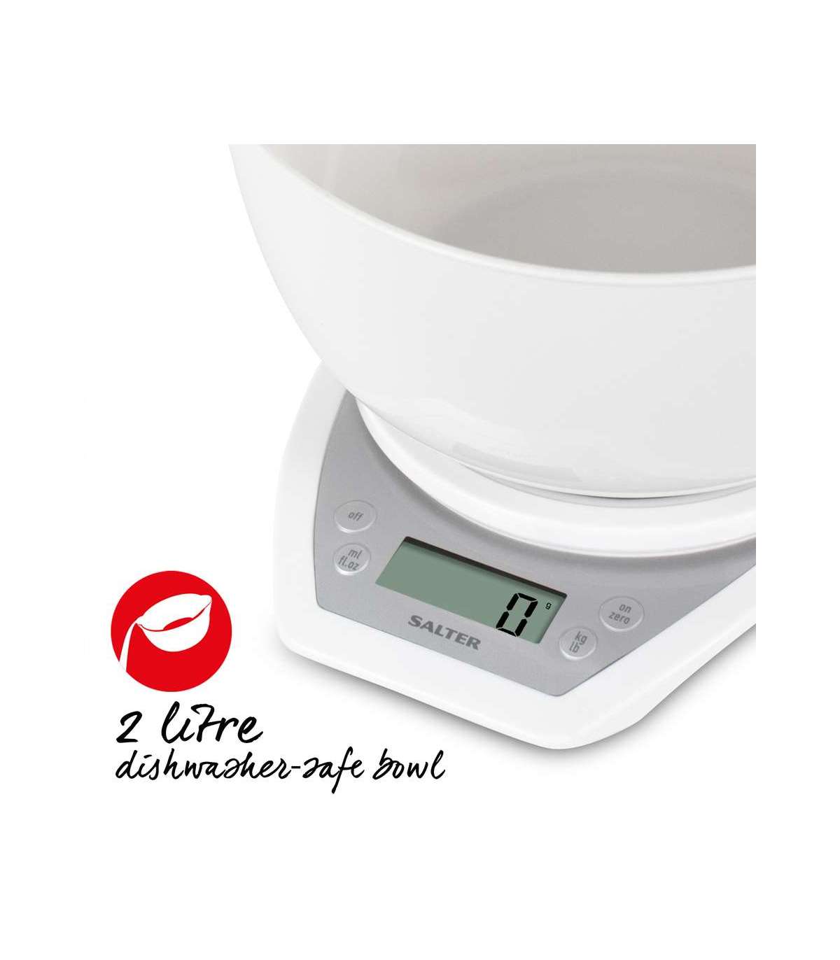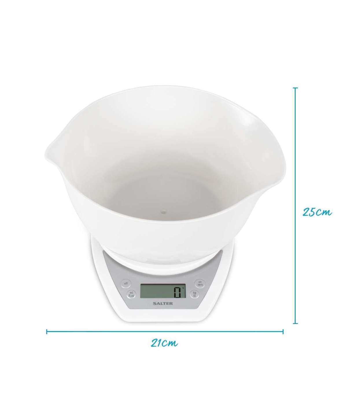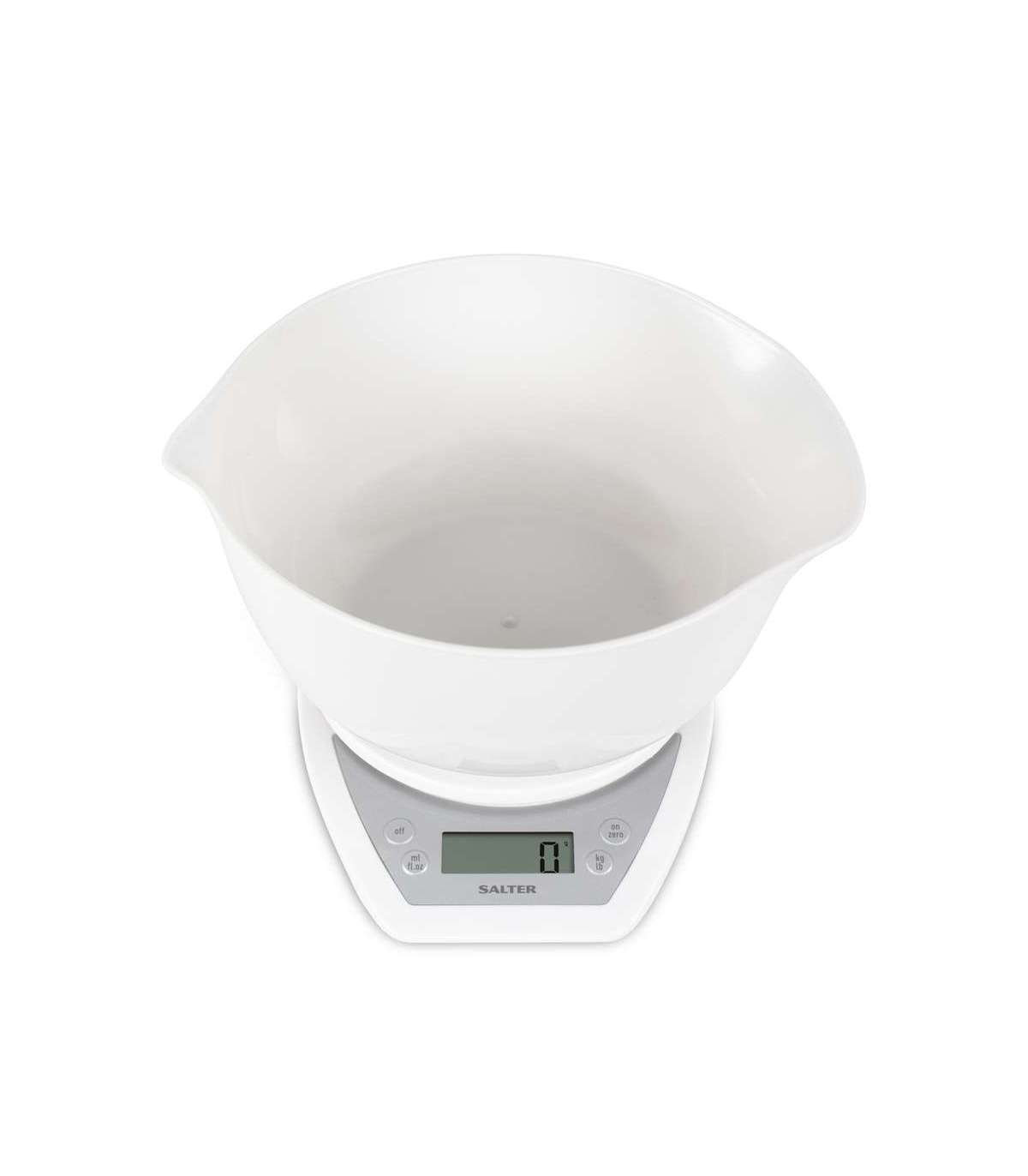 Salter 1024 WHDR14 Digital Kitchen Scales with Dual Pour Mixing Bowl White