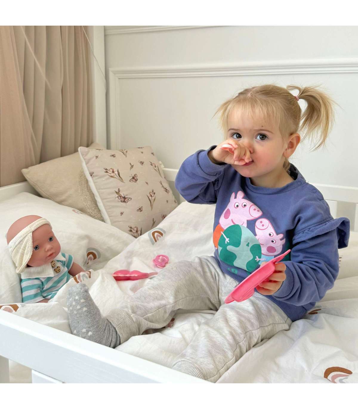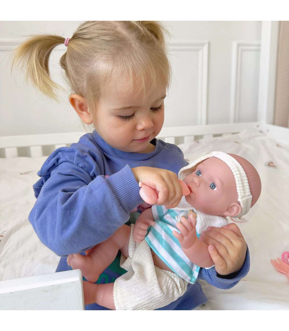 Набор «Няня» — это необычная игрушка, созданная для детей, которые любят играть роли взрослых. Кукла длиной 30 см тщательно выполнена из мягкой резины, что обеспечивает мягкость и приятные тактильные ощущения. Ее ручки, ножки и голова подвижны, что позволяет занимать различные позы во время игры, а также у нее есть съемная одежда, что дает детям возможность творчески одевать и раздевать куклу. В комплекте находятся все необходимые аксессуары для ухода за куклой. Вы найдете здесь набор для кормления, аксессуары для пеленания и игры. На прогулки стоит взять куклу и рюкзак с переноской, что позволит детям лучше общаться и проявлять креативность во время игры.