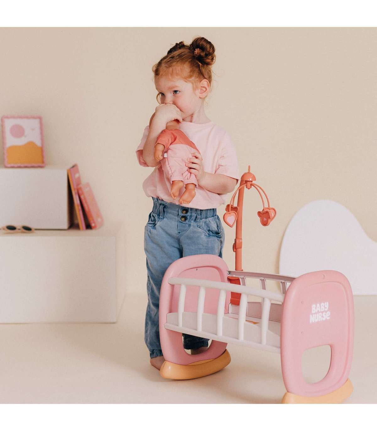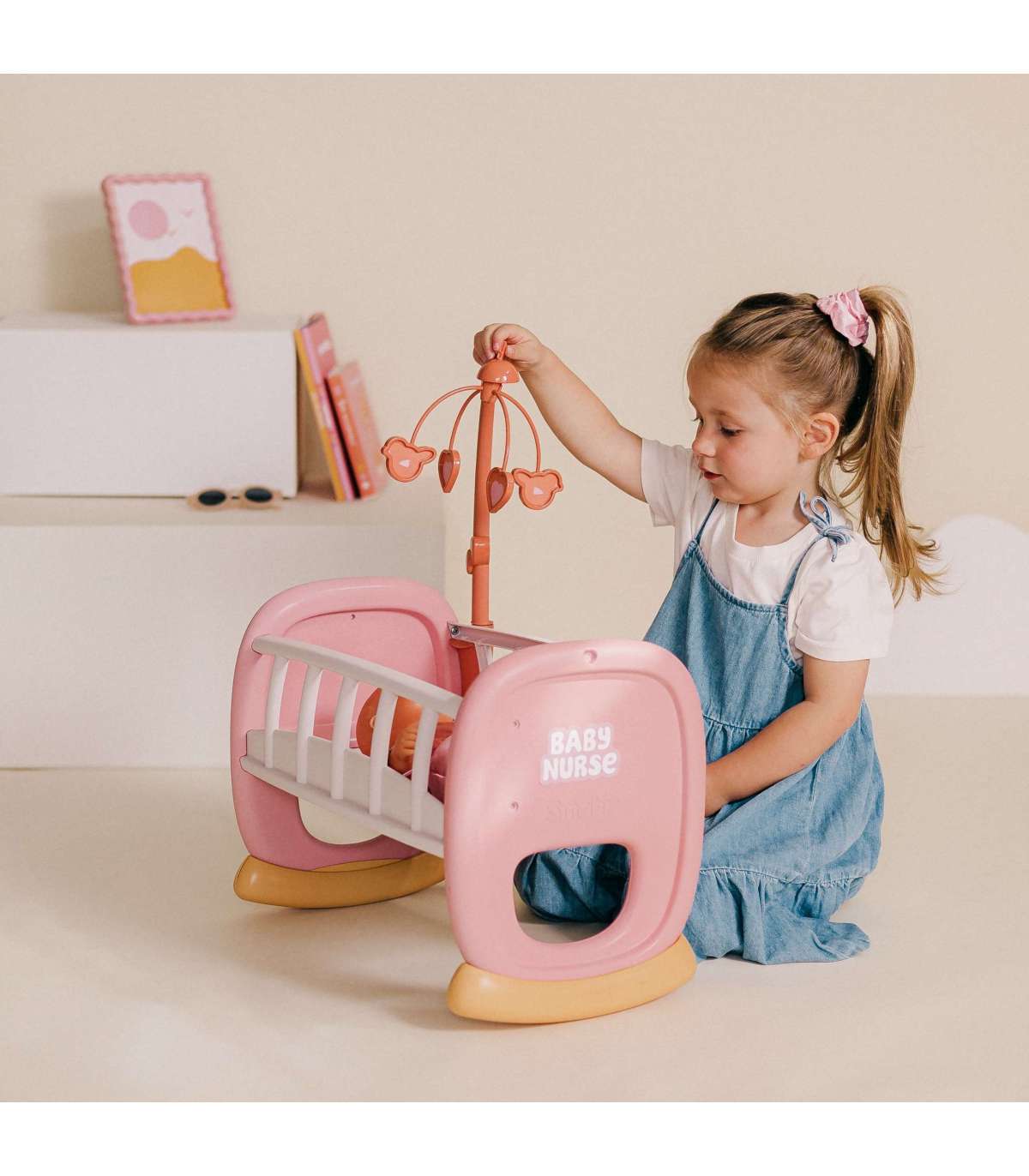 Kołyska Baby Nurse to idealne miejsce do drzemki każdej laleczki! Dzięki pięknie zaprojektowanej konstrukcji w ulubionych kolorach możesz delikatnie kołysać lalkę do snu. Ręcznie obracana karuzela przymocowana do kołyski wprowadza dziecko w świat zabawy i relaksu, pomagając maluchowi zasnąć. Powierzchnię kołyski łatwo utrzymać w czystości – wystarczy wilgotna szmatka. Produkt został wyprodukowany we Francji, w 63% z materiałów z recyklingu, co łączy zabawę z edukacją ekologiczną.
