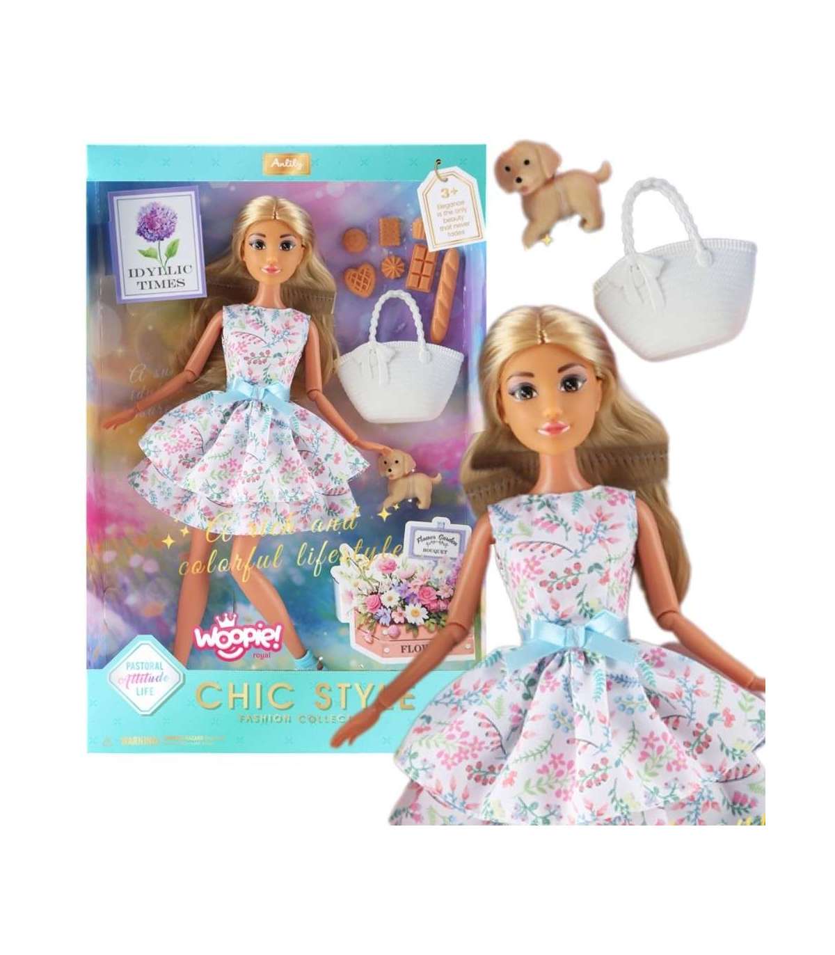 WOOPIE ROYAL Lalka Lily 30 cm Wiosenna Suknia Akcesoria Piesek Piknik