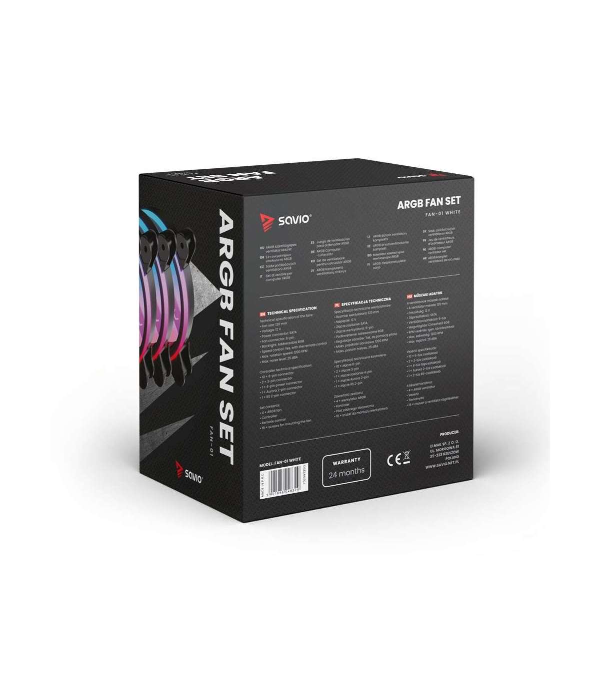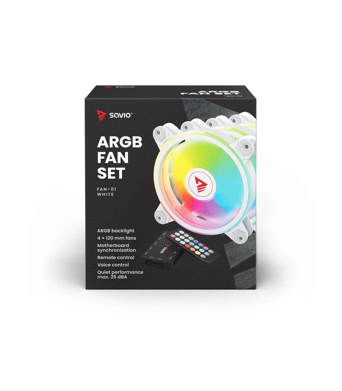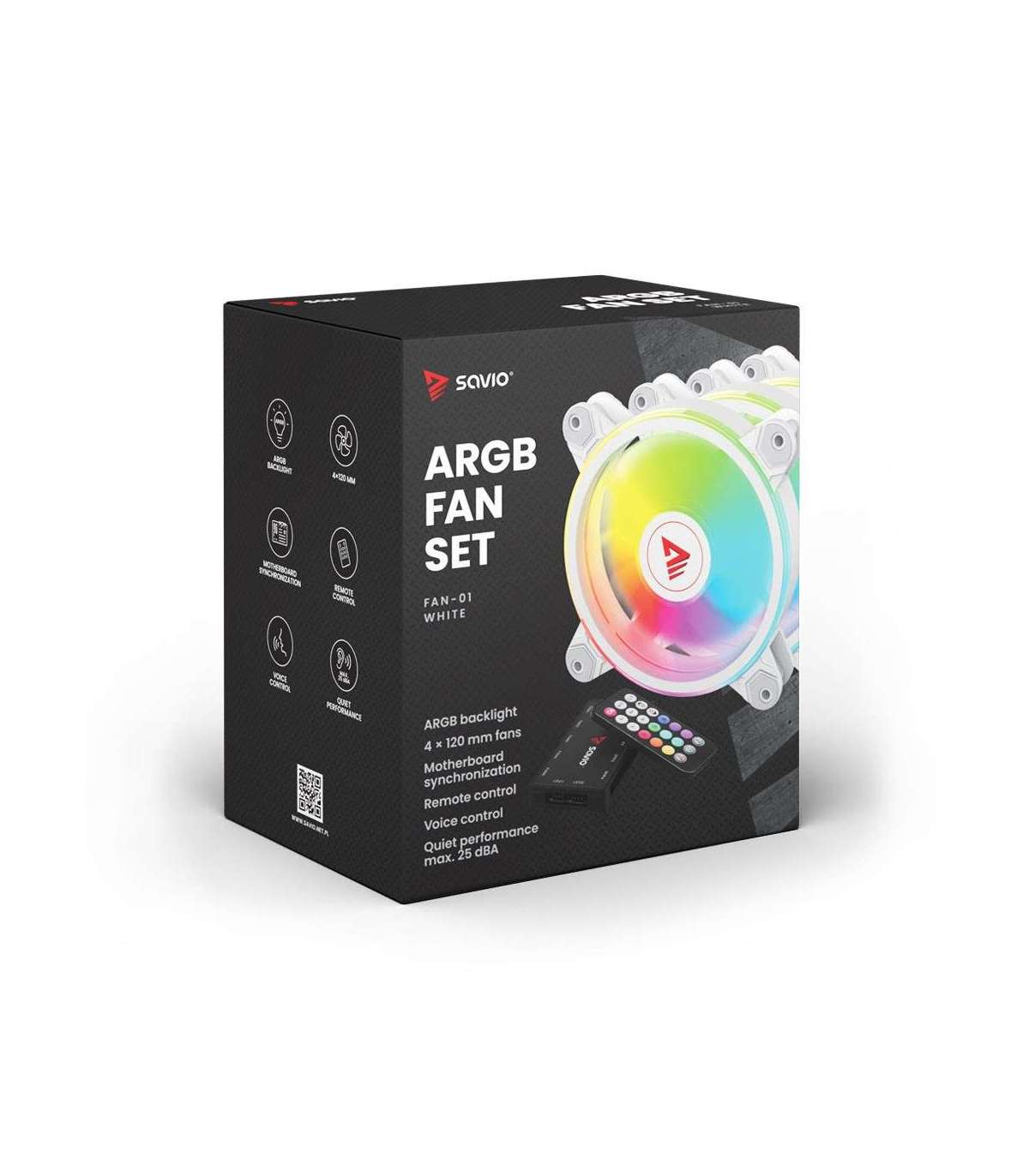 SAVIO FAN-01 WHITE 4-pack 120mm ARGB fan including controller and remote control