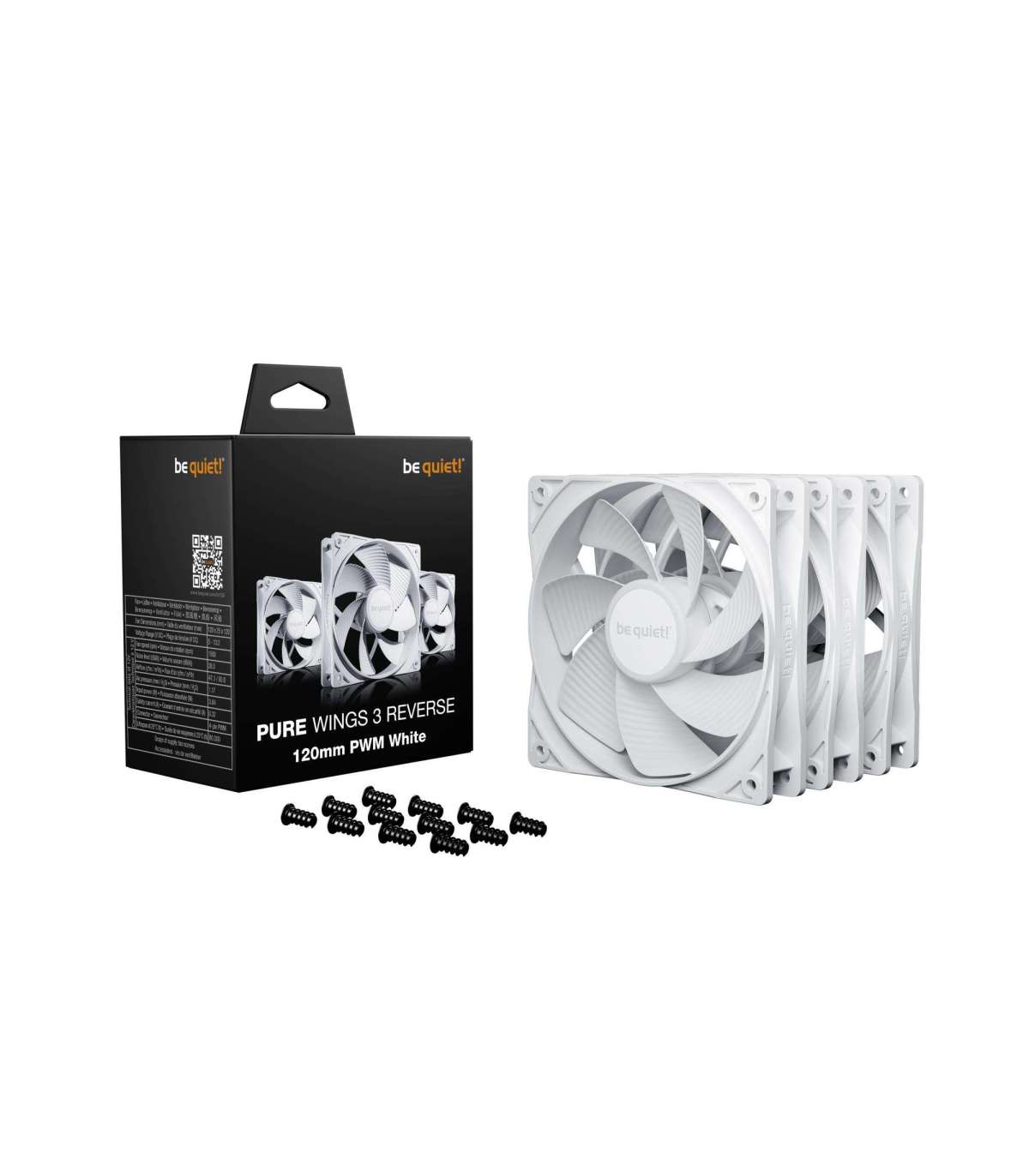 With low minimum rpm and reversed fan blades, the Pure Wings 3 120mm PWM Reverse White Triple Pack is the perfect choice for side or bottom air intakes. The fan offers outstanding reliability and makes for a long-lasting, companion for your gaming system.