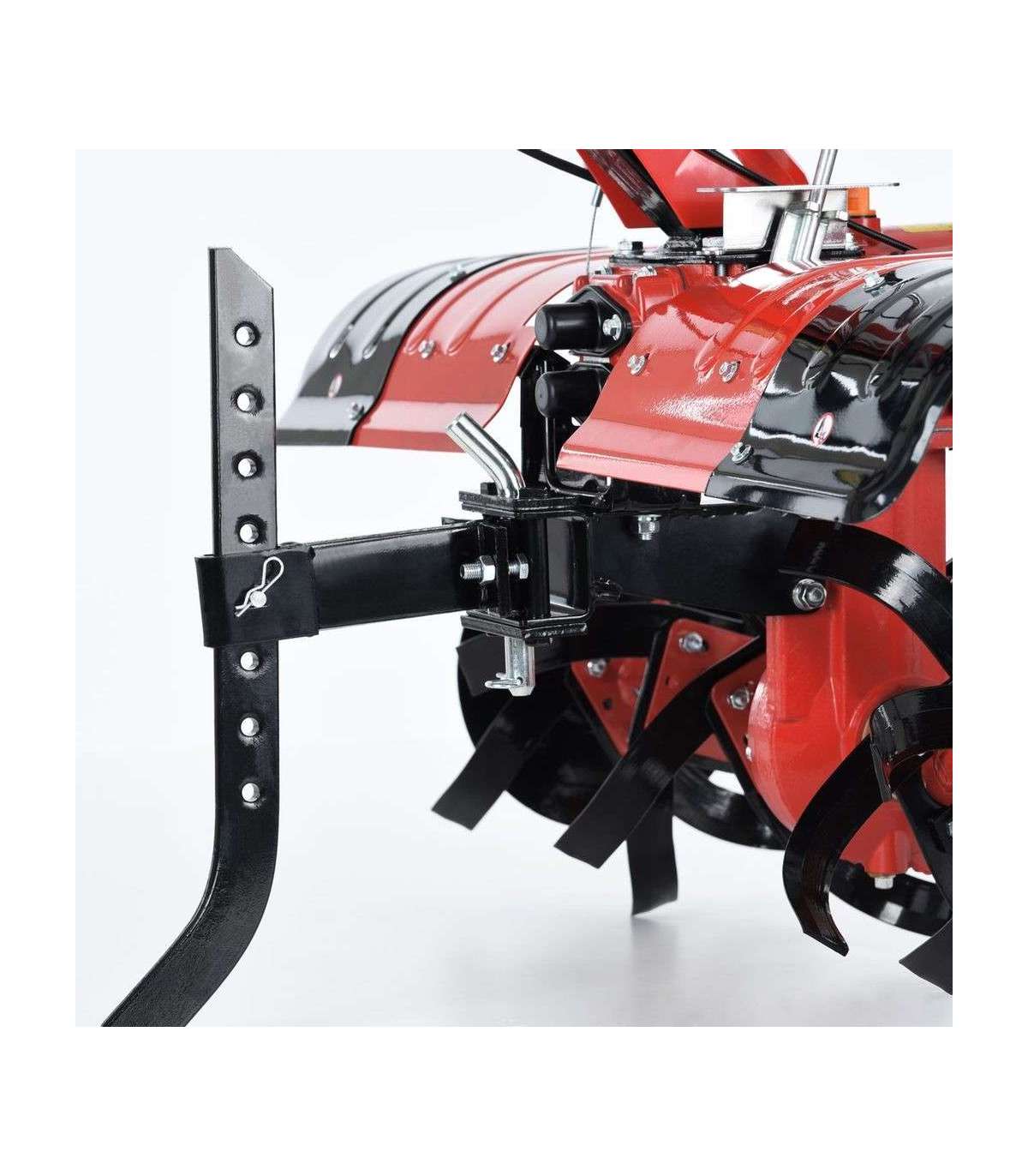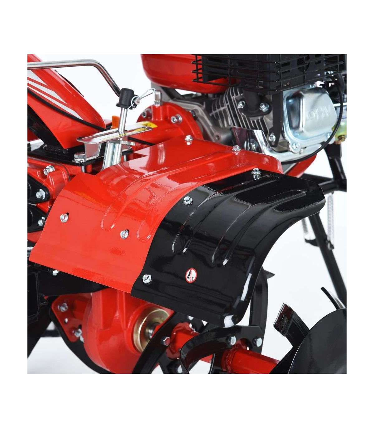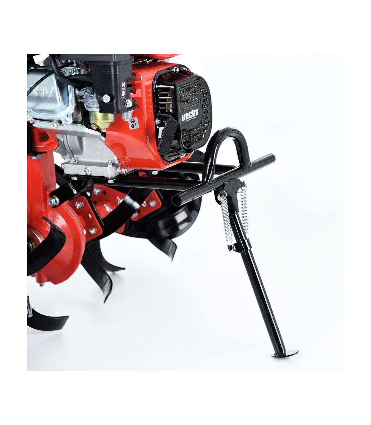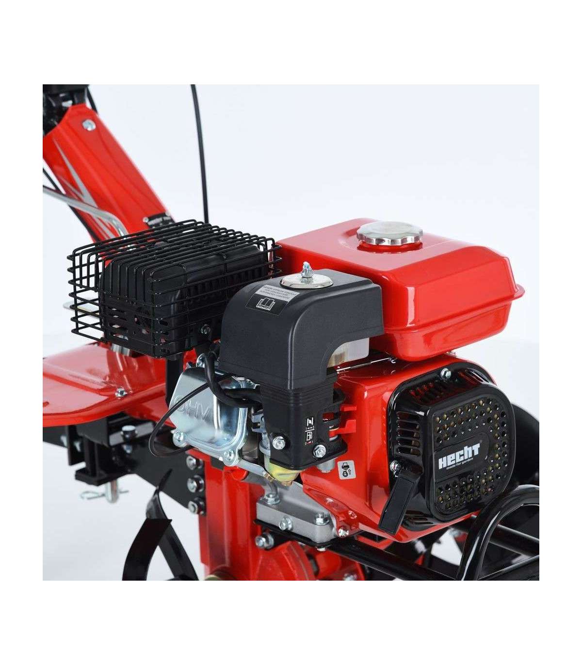 Motor gasoline tiller powered by 4-stroke engine HECHT with displacement of 212 cc. Power 5.4 HP. Working width is 81/104 cm - 6 pcs tines, by diameter 38 cm. Weight: 72 kg.