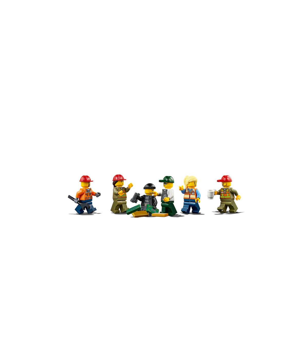 Komplektis on 6 LEGO® minifiguuri: 4 rongitöötajat, turvamees ja suli.
